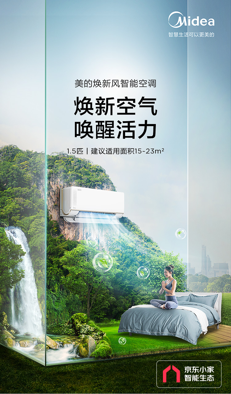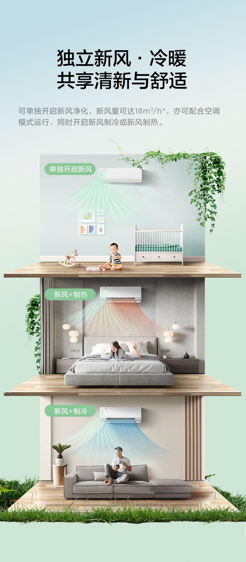 美的(Midea) 新一级 焕新风 大1.5匹变频冷暖壁挂式 新风空调 KFR-35GW/N8MKA1
