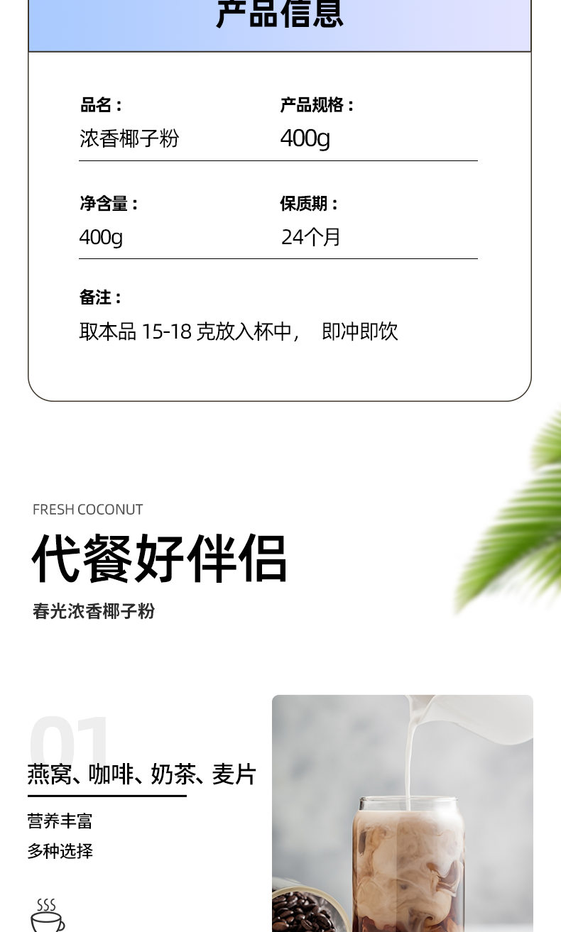 浓香椰子粉400g 罐 冲调大众口味