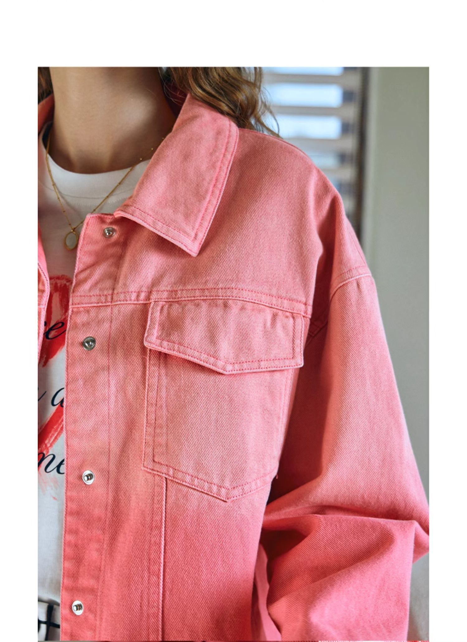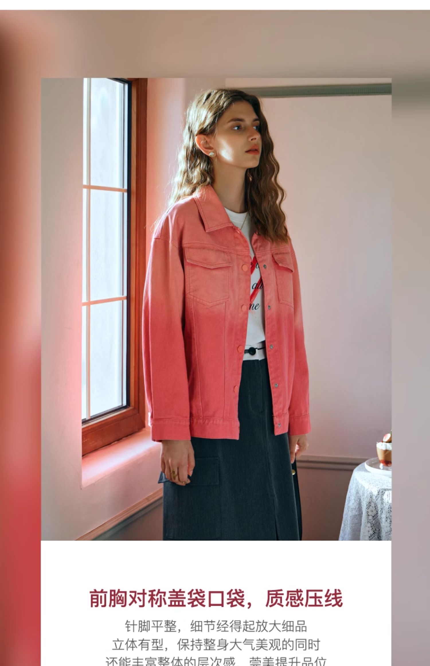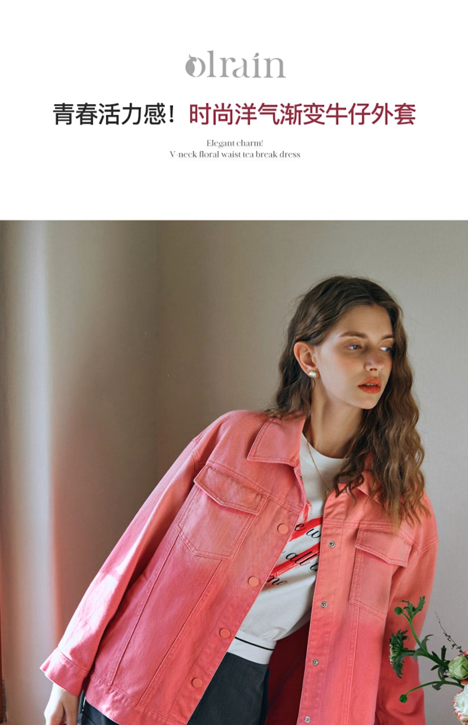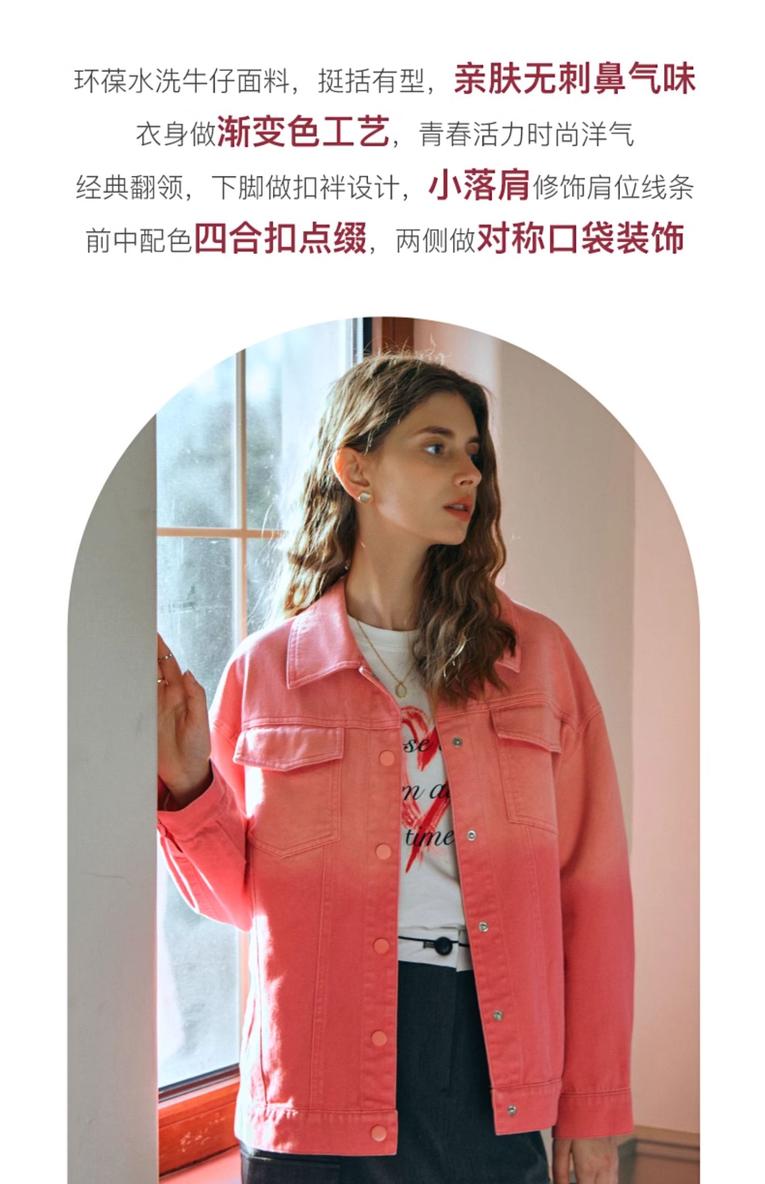 欧芮儿粉红色渐变牛仔外套女短款早春2024新款宽松夹克上衣高级感