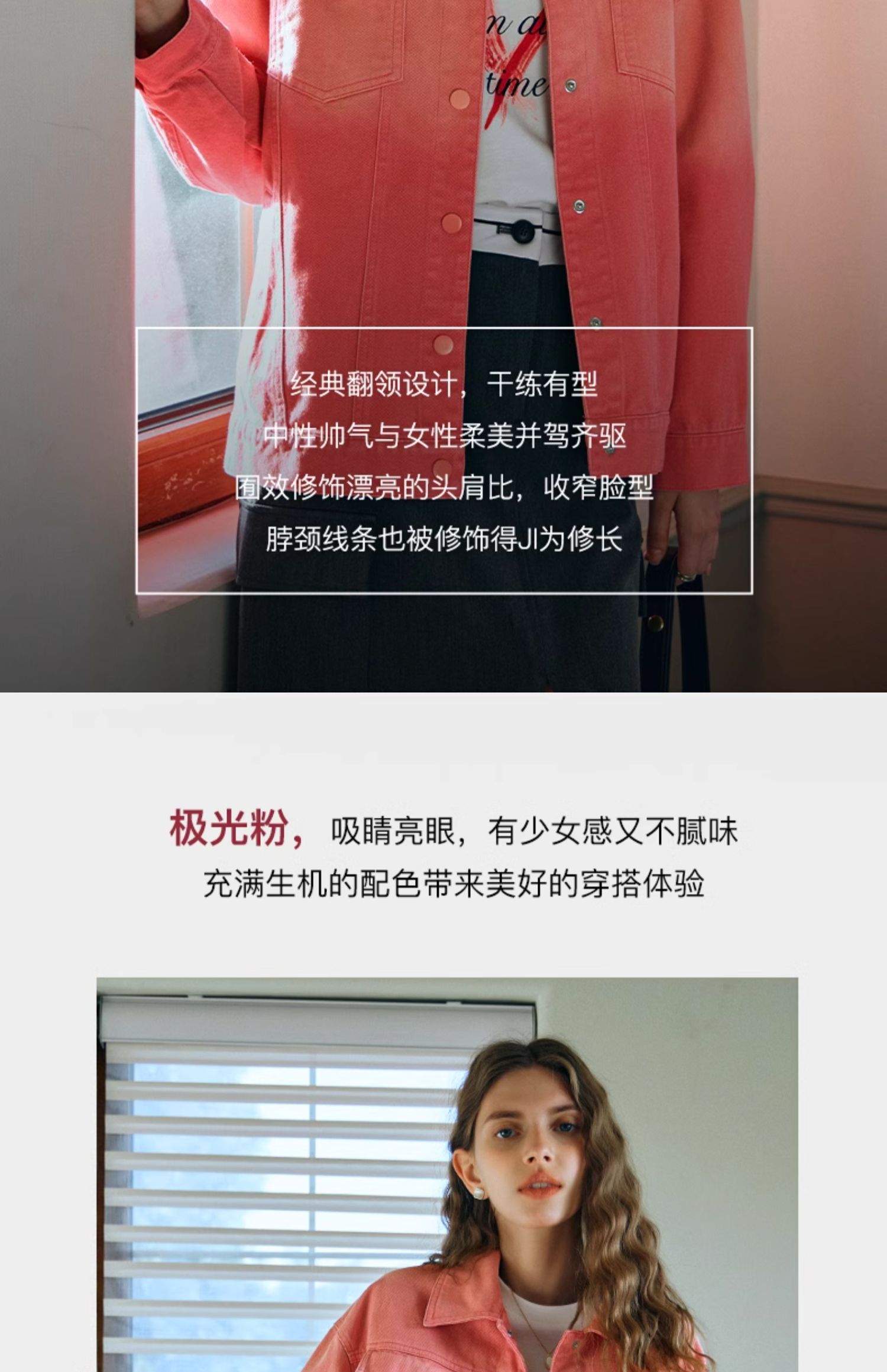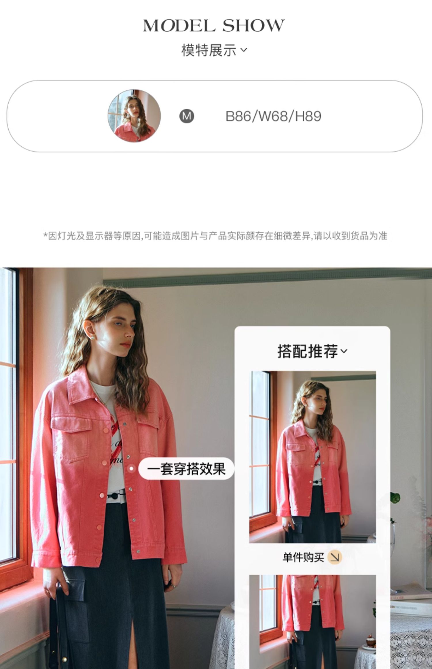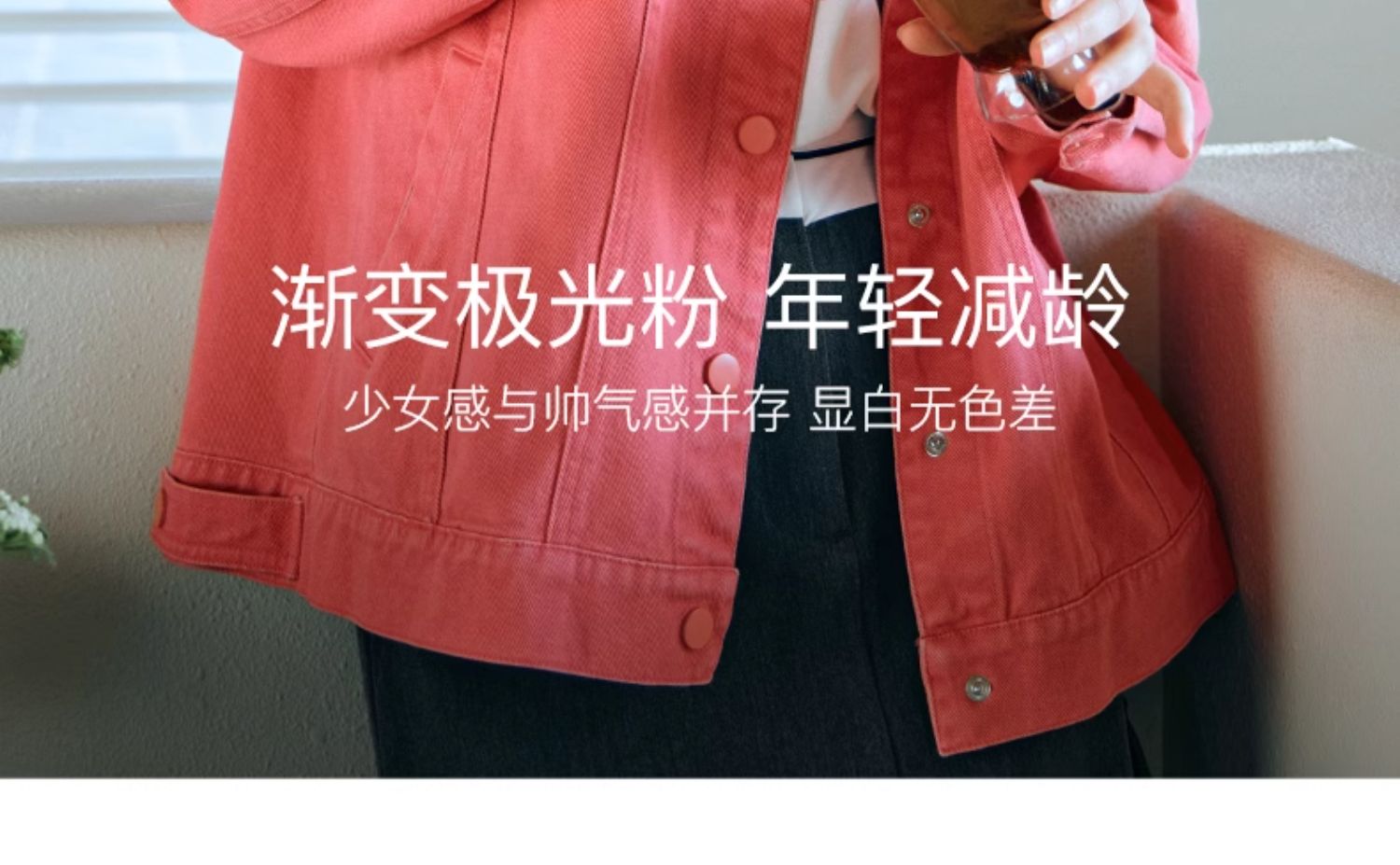 欧芮儿粉红色渐变牛仔外套女短款早春2024新款宽松夹克上衣高级感