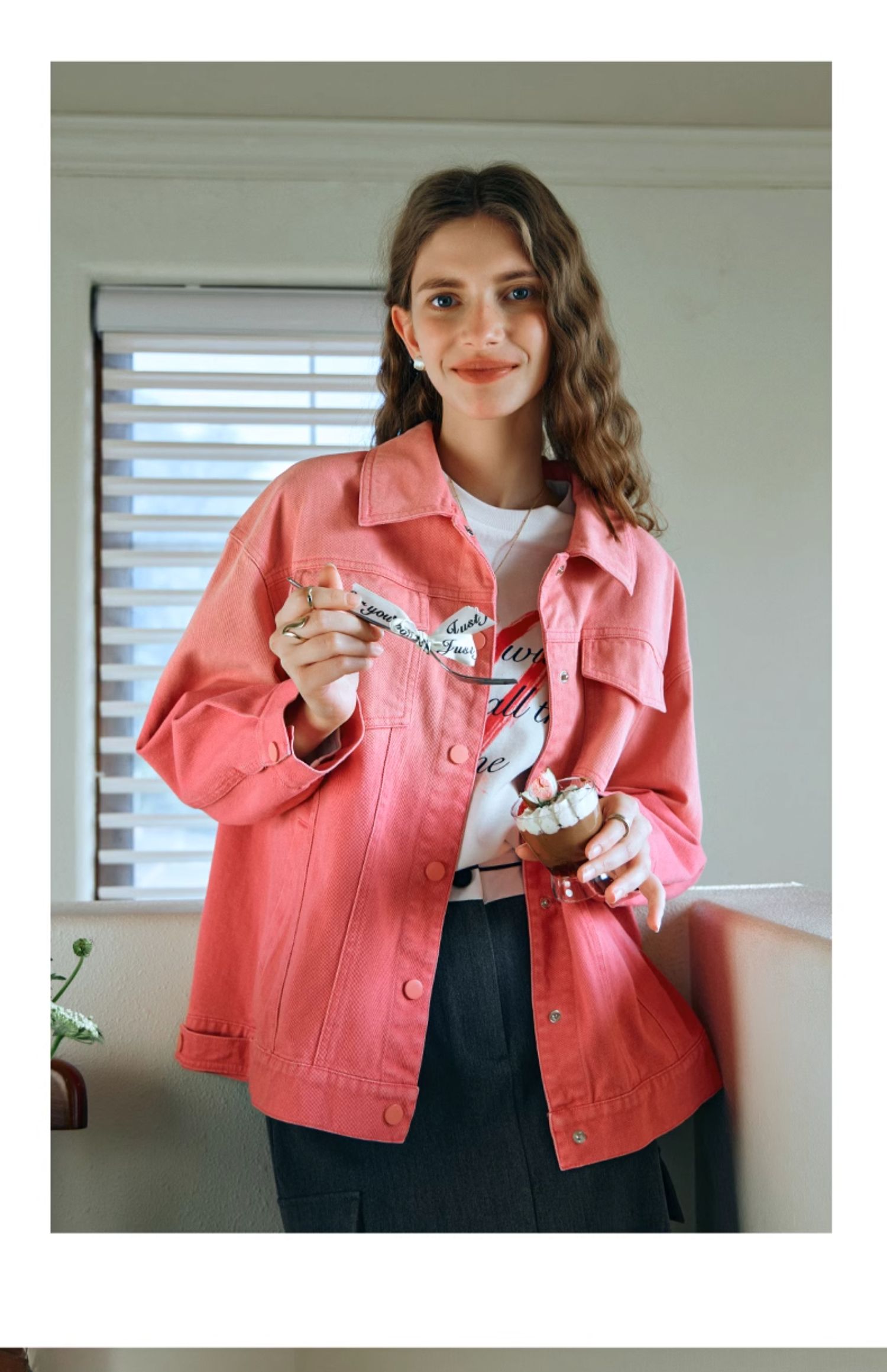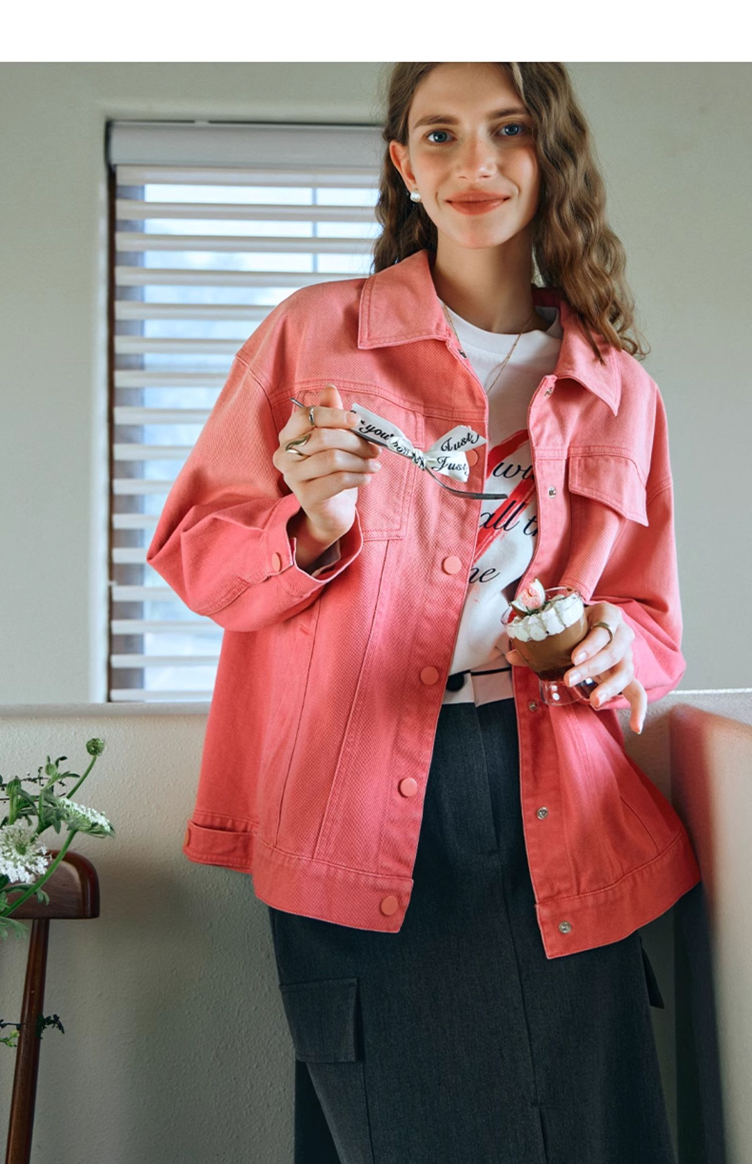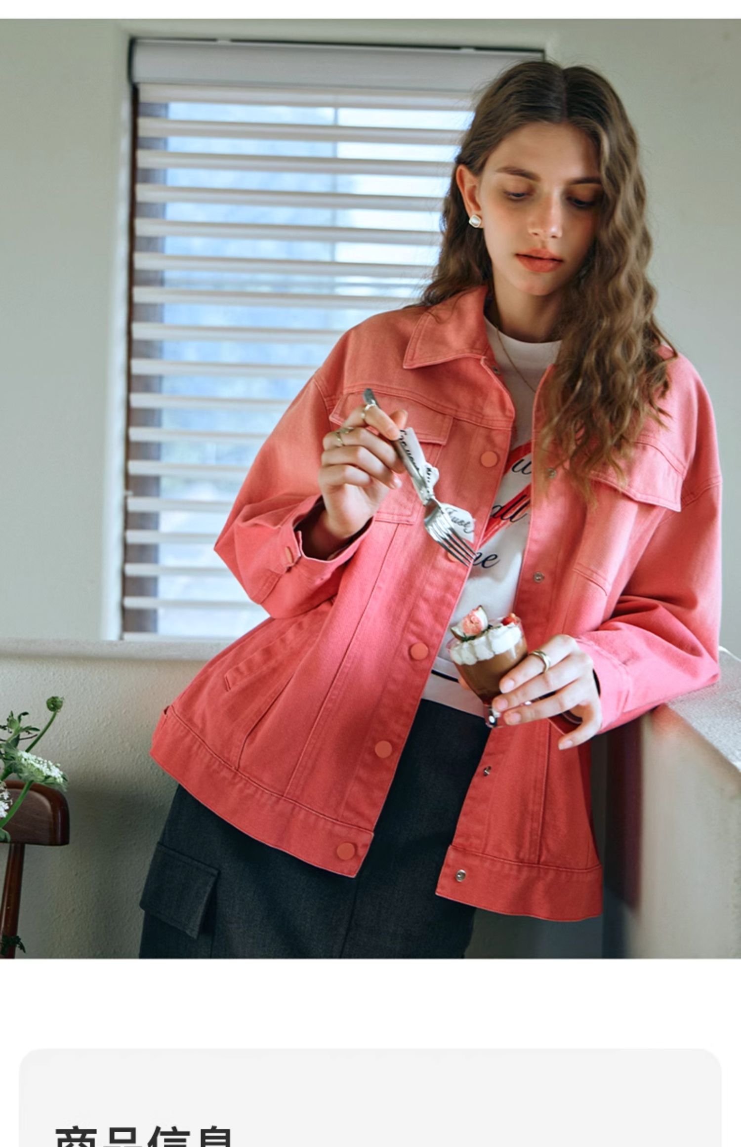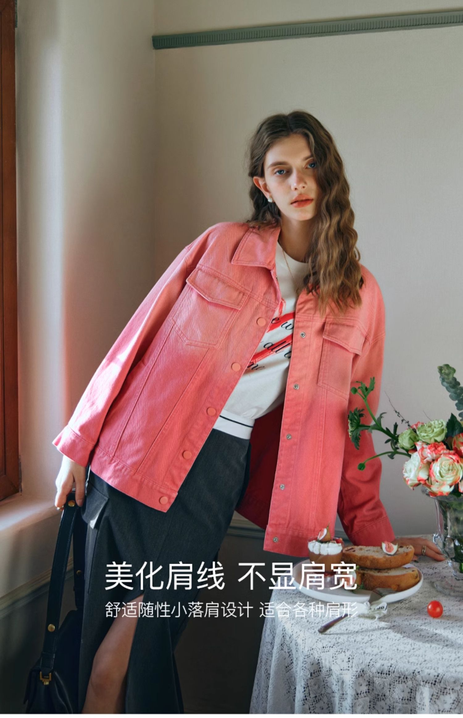 欧芮儿粉红色渐变牛仔外套女短款早春2024新款宽松夹克上衣高级感