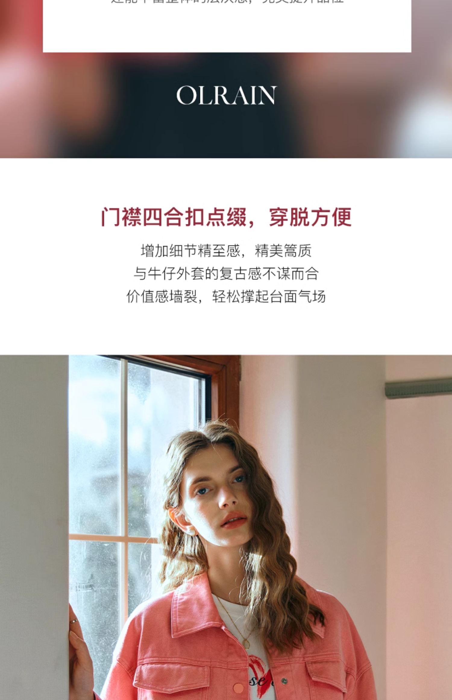 - “精致”是欧芮儿olrain品牌文化的核心,欧芮儿认为,精致的女人,不但要外在动人,更要内在迷人,内外兼修,有魅力、有气质、有内涵,自信而不自傲,优雅而不矫揉,自有万种风情而不轻浮,更不故作矜持。