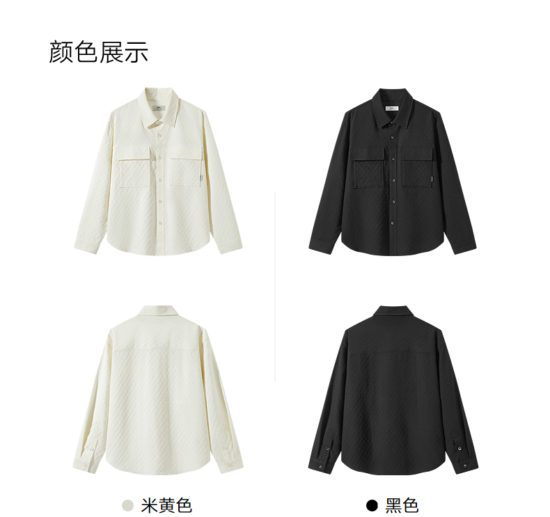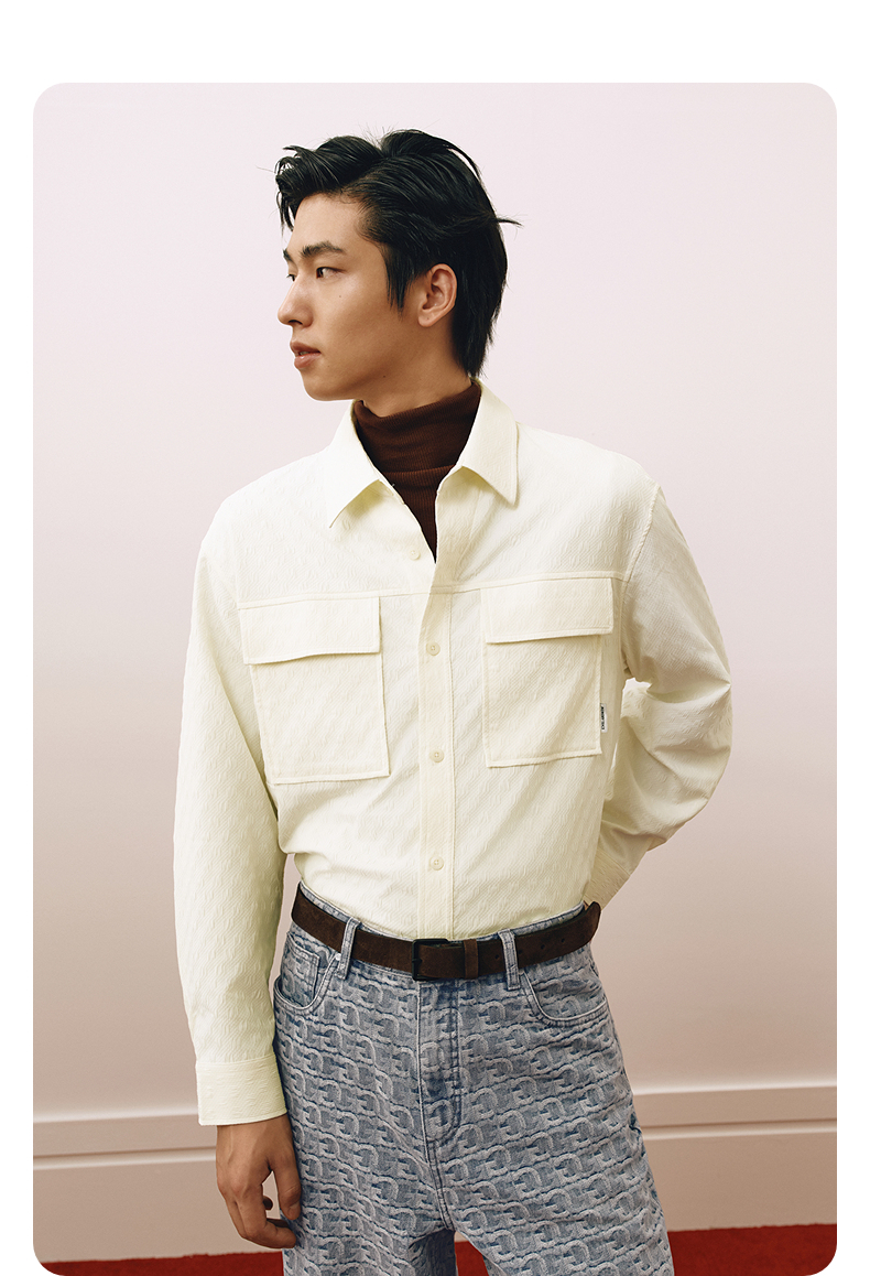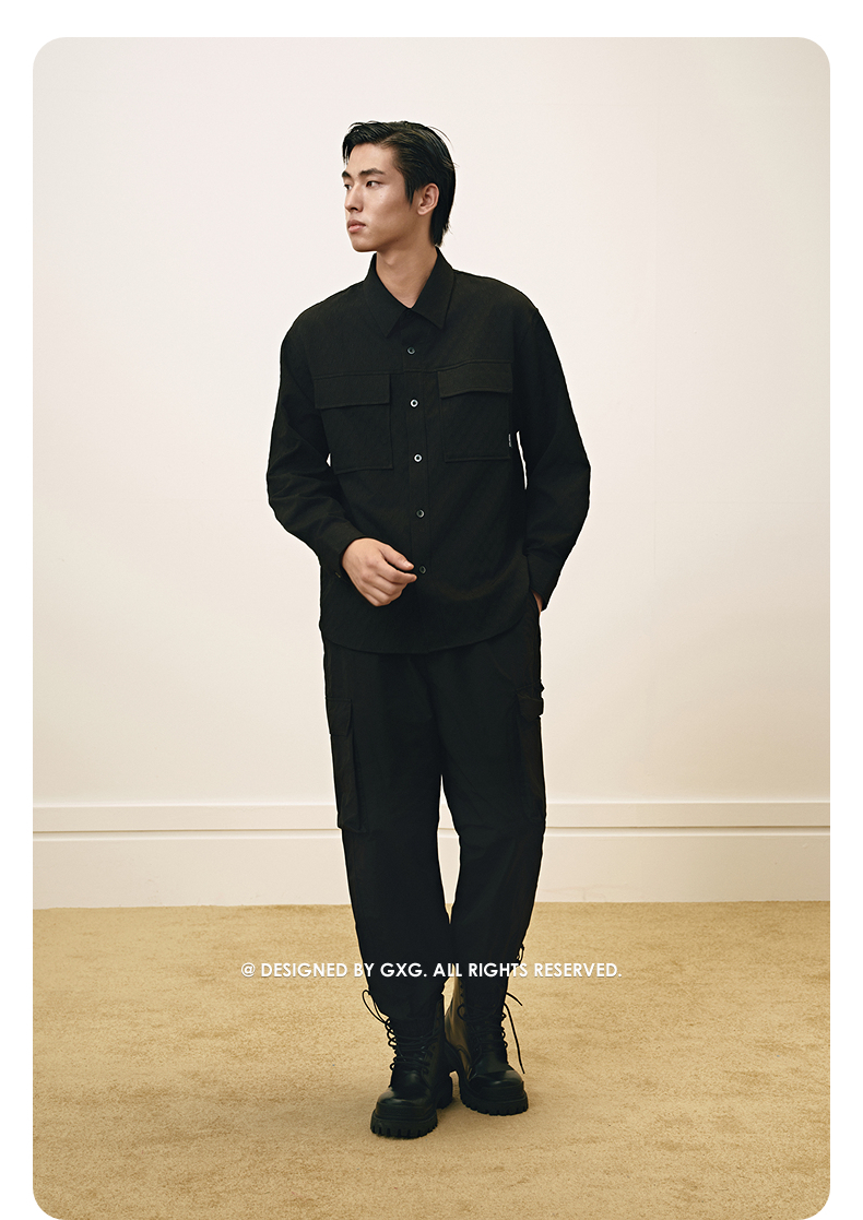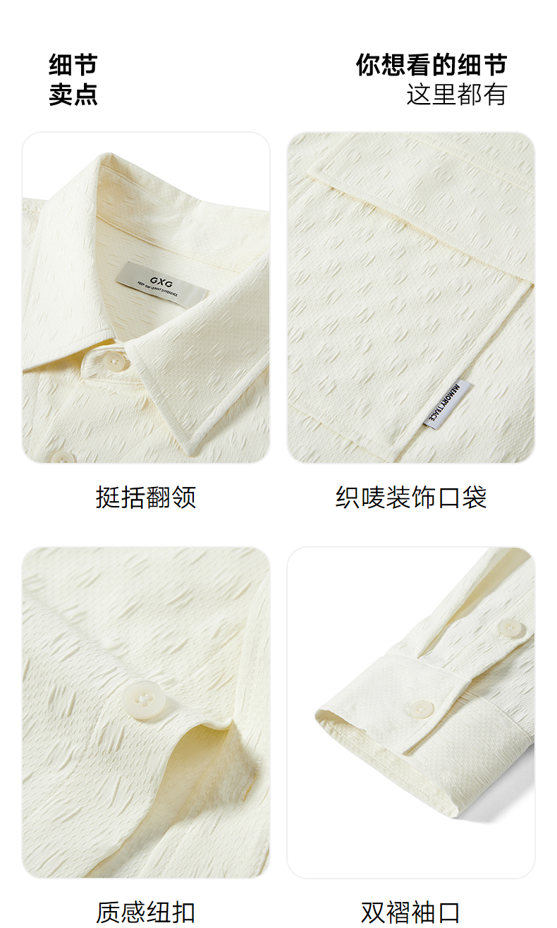 GXG男装 双色泡泡纱口袋设计简约休闲宽松翻领长袖衬衫25春热卖