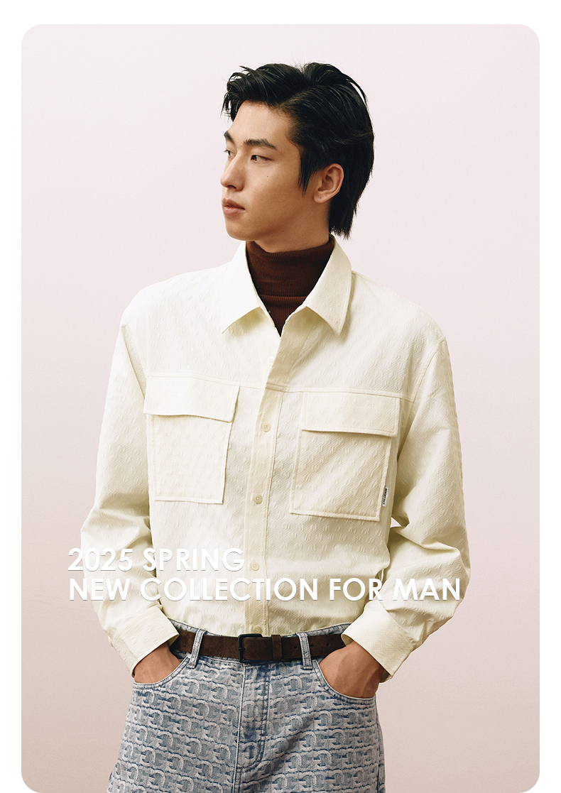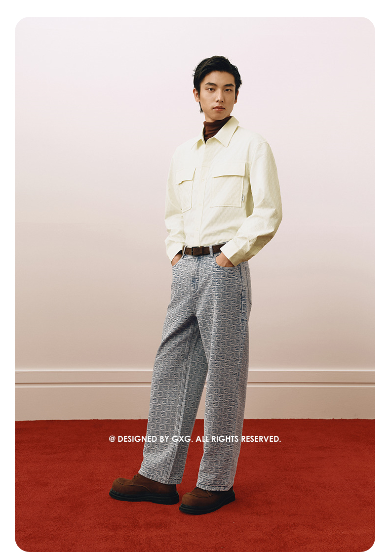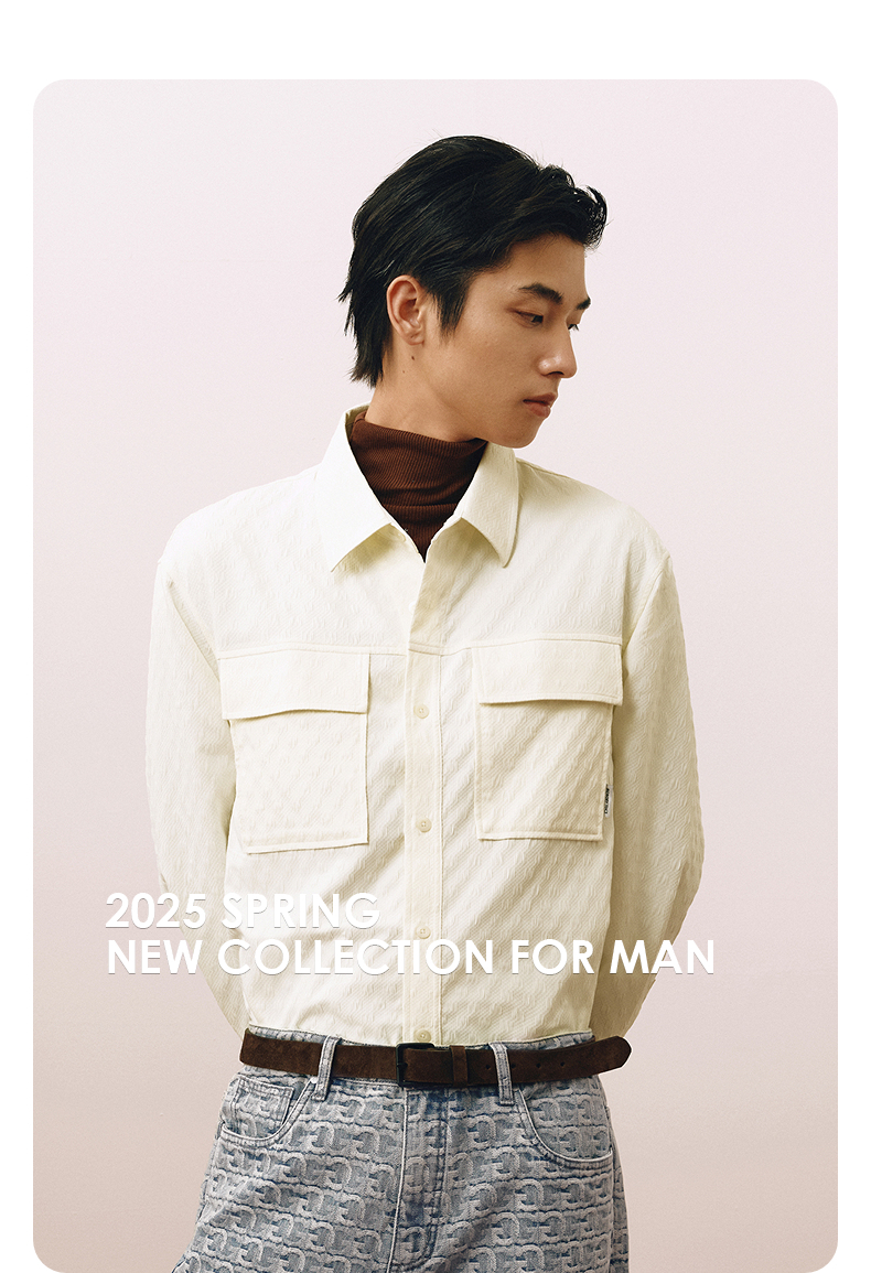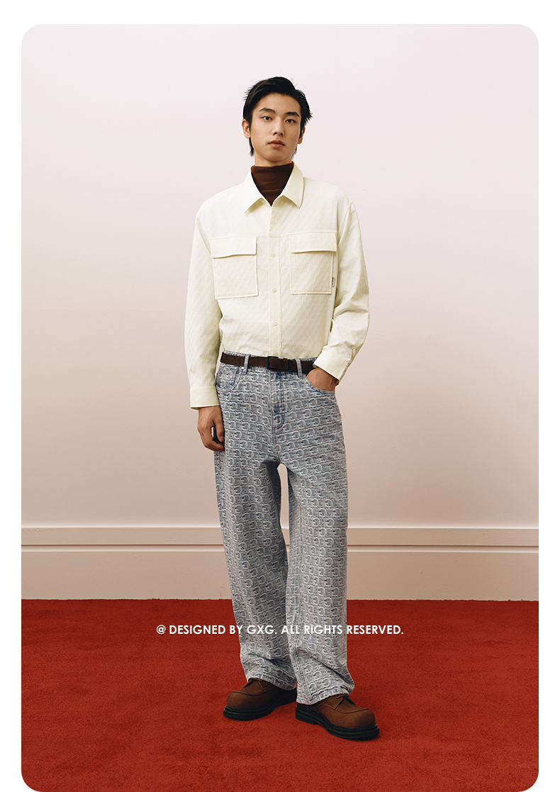 GXG男装 双色泡泡纱口袋设计简约休闲宽松翻领长袖衬衫25春热卖