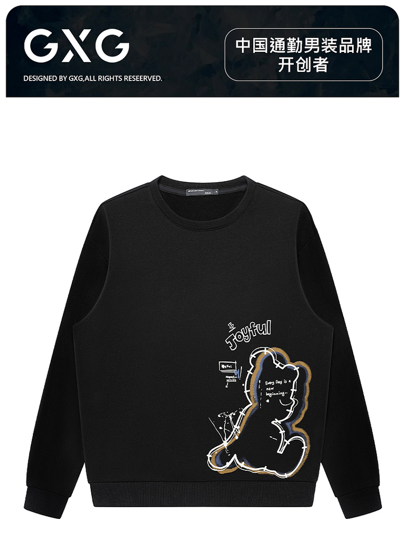 GXG男装【100%棉】秋季卡通动漫轮廓熊男女同款休闲百搭圆领卫衣K&C