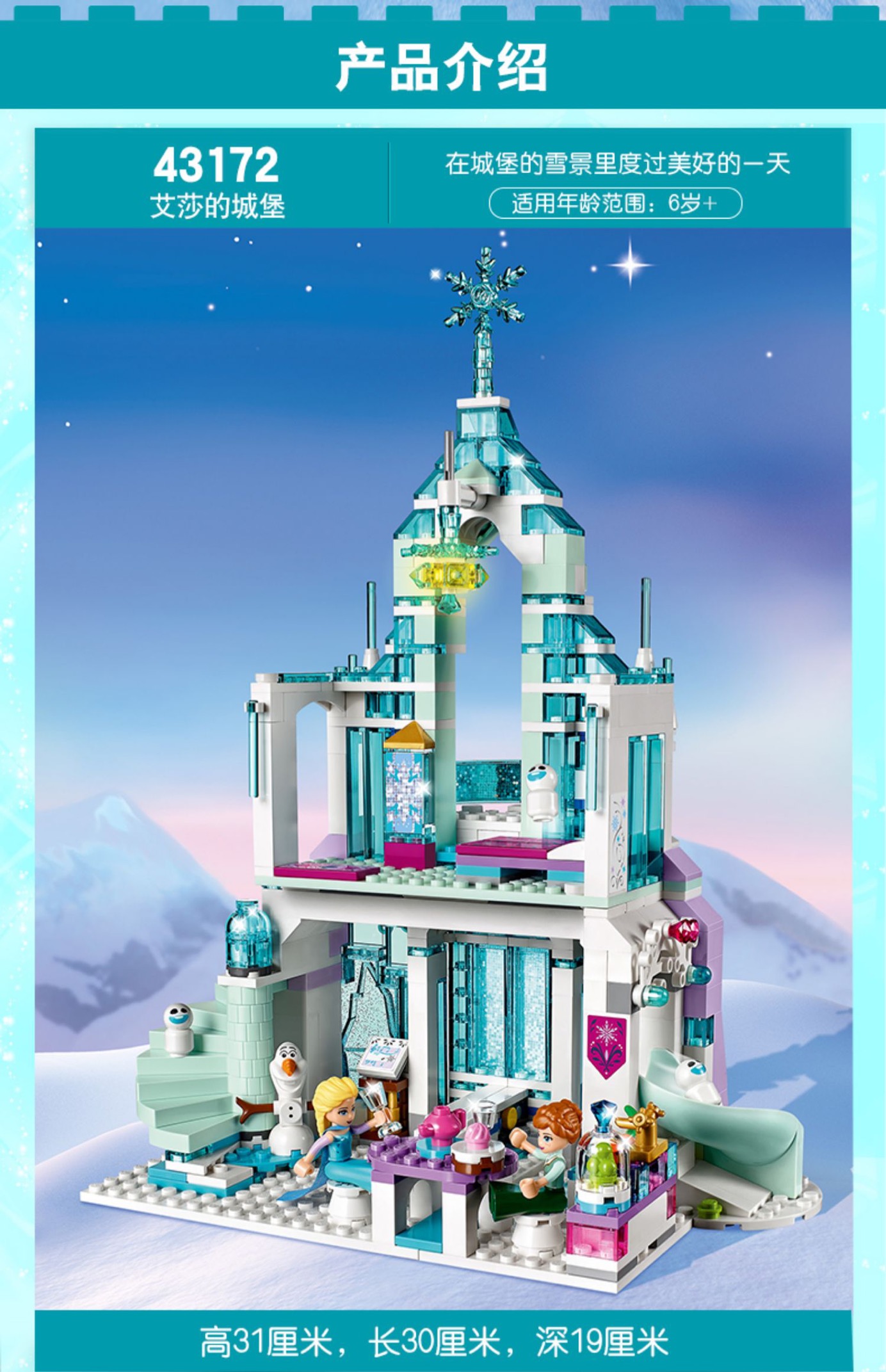 LEGO乐高迪士尼系列43172艾莎的魔法冰雪城堡