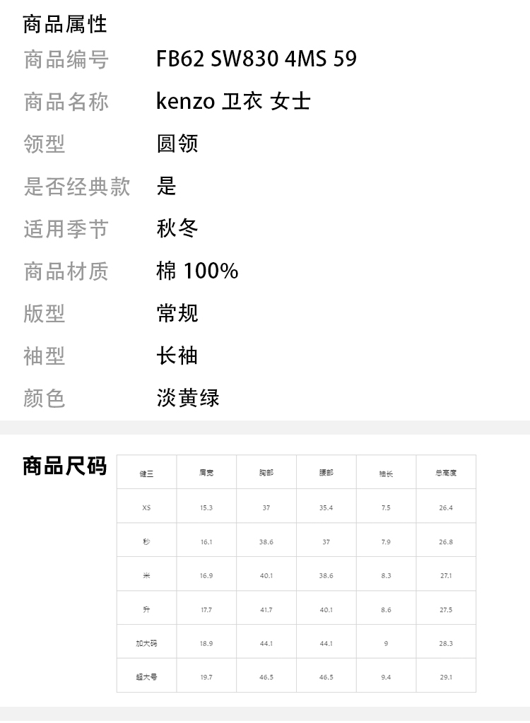 KENZO 高田贤三 箭头标识 女士卫衣 绿色 FB62 SW830 4MS 59
