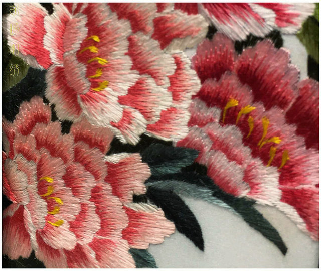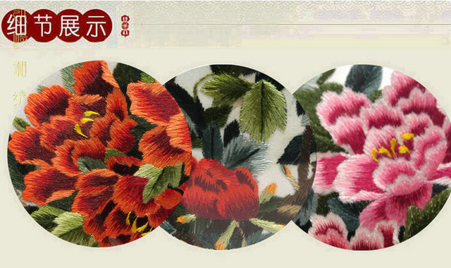 凯崎湘绣 纯手工刺绣 四页小屏风双面绣摆件 办公室家居 客厅装饰 马到成功 送礼佳品 牡丹错针绣