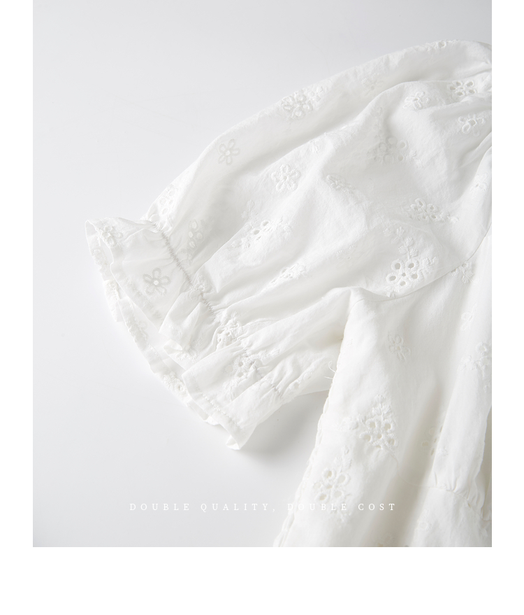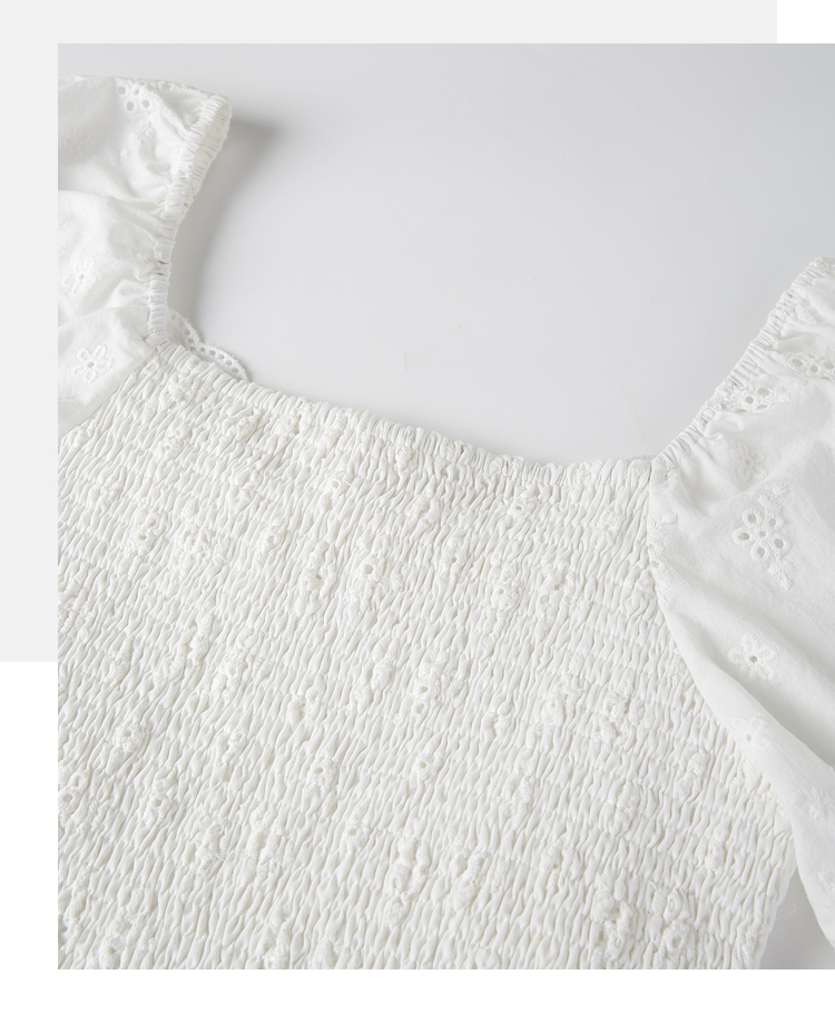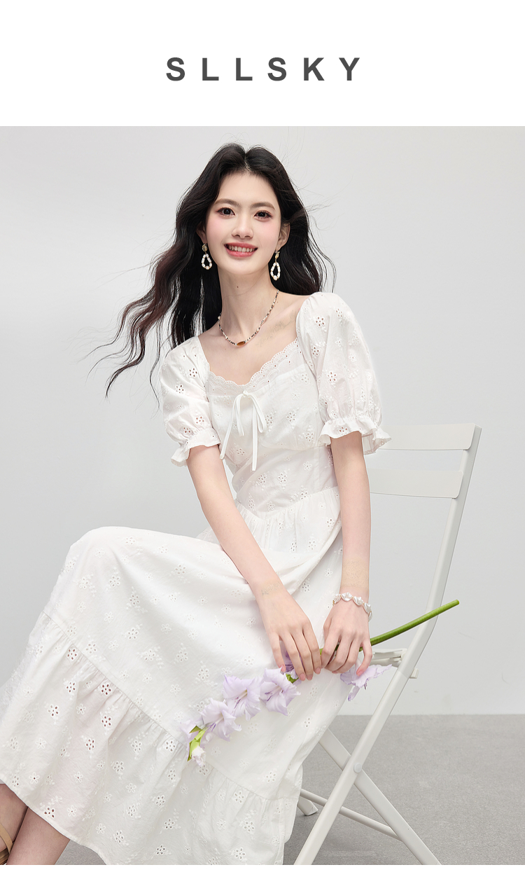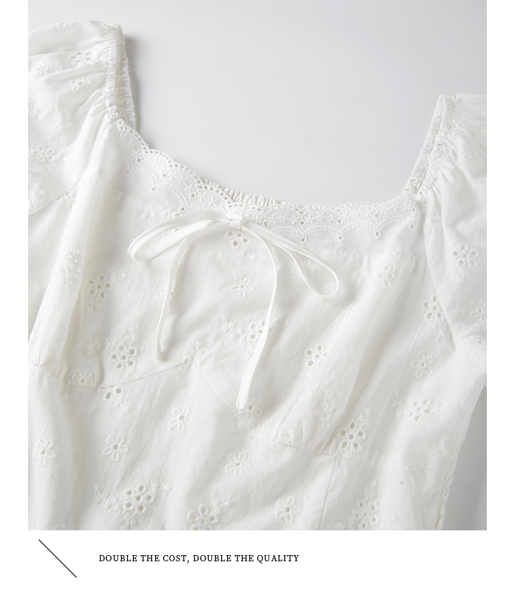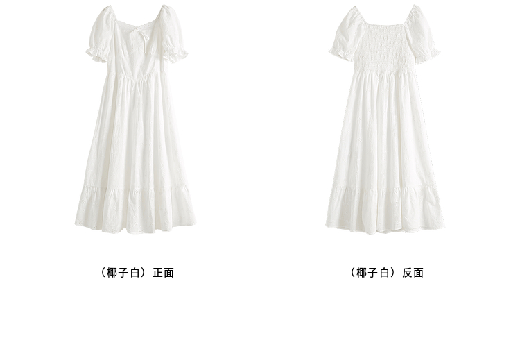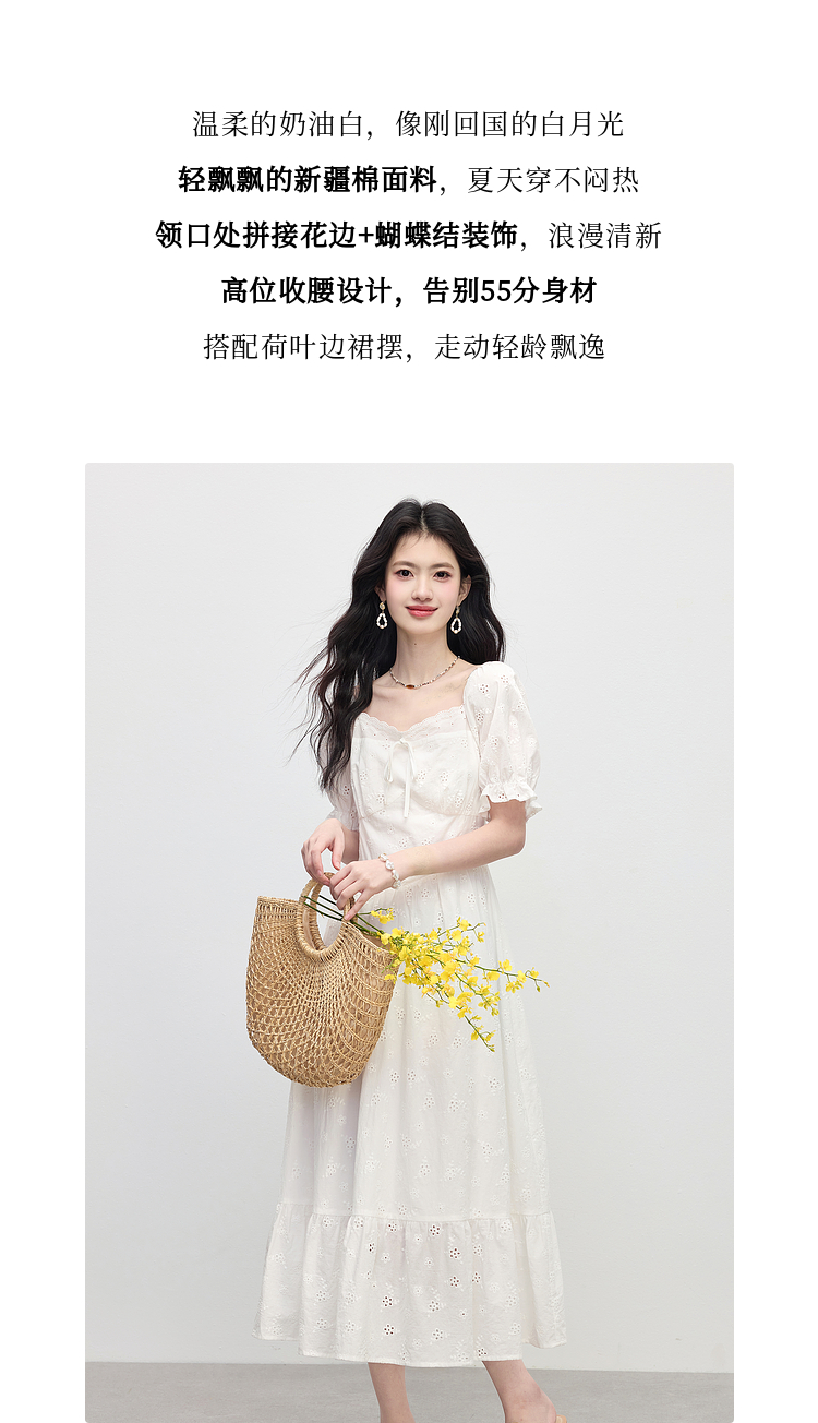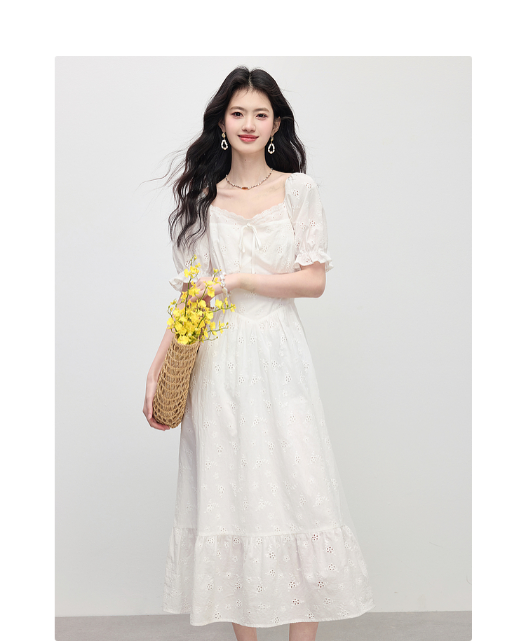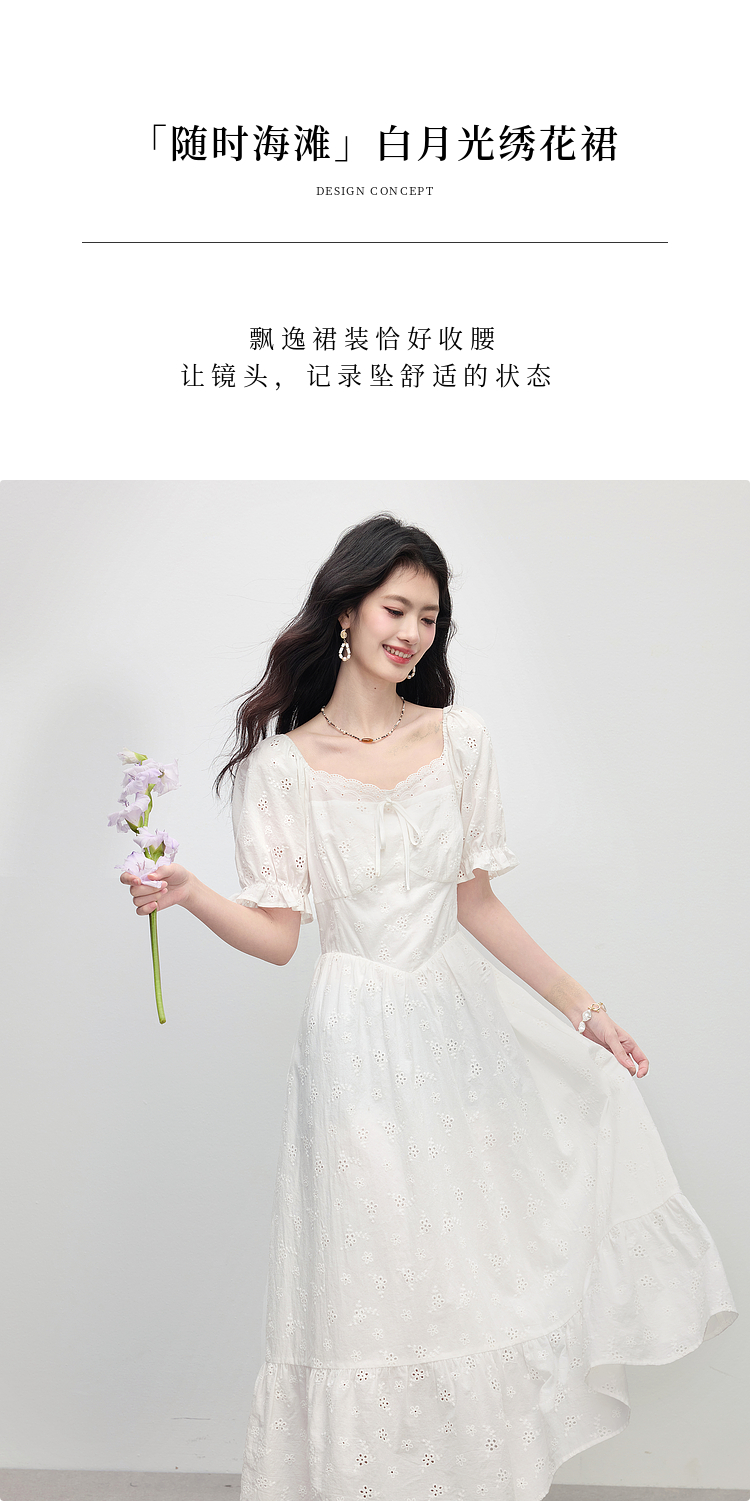【专属特价】熙世界纯棉白色连衣裙女夏装新款法式浪漫刺绣方领荷叶边初恋长裙