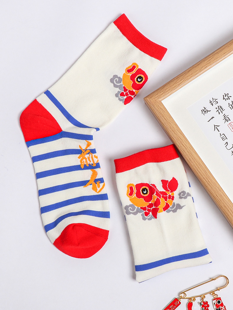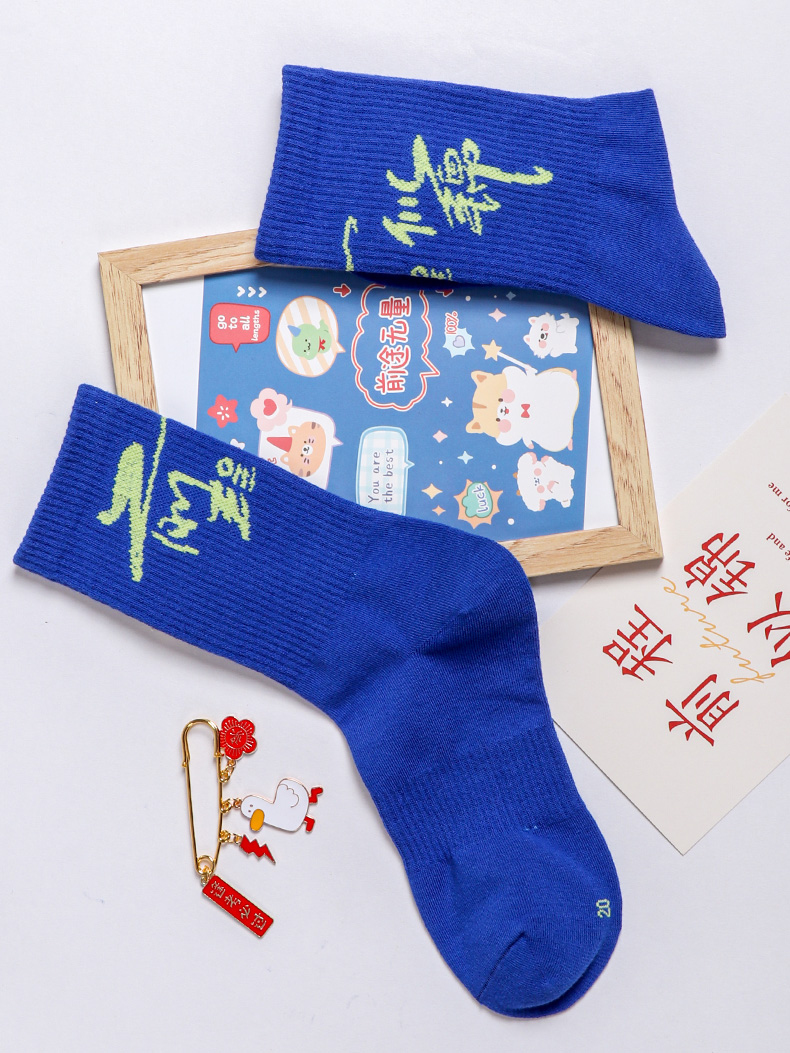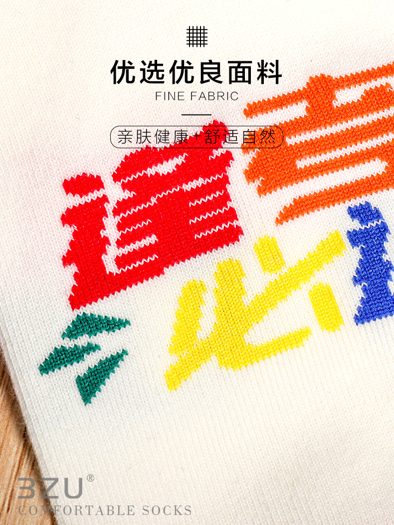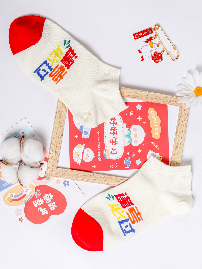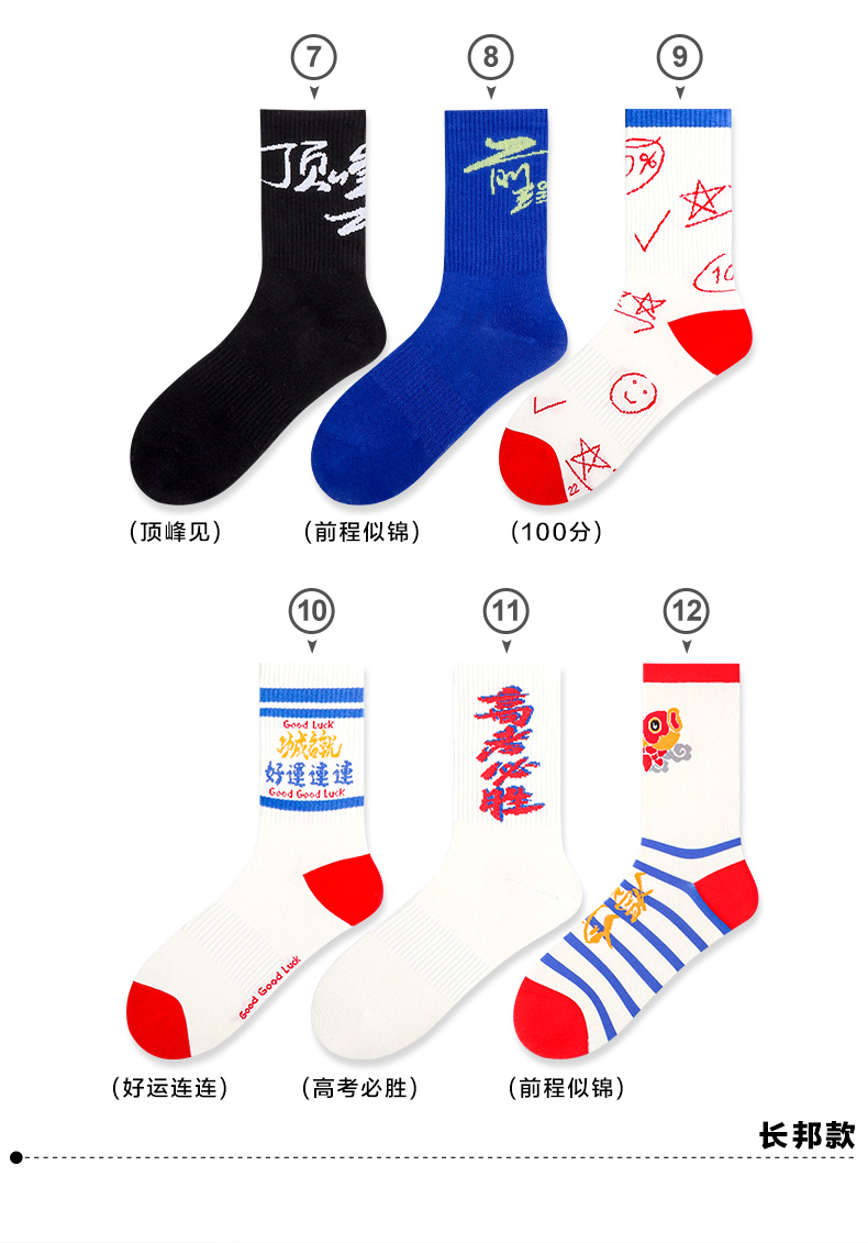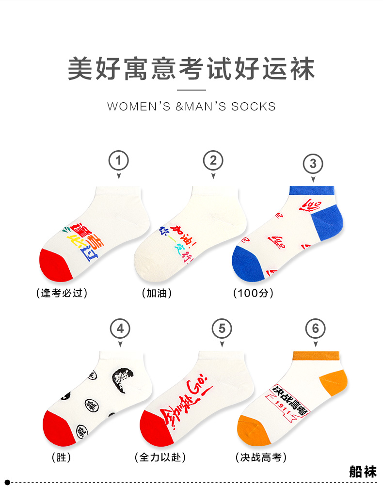 任选5双36.8元 足装秀男女春夏棉船袜学生袜考试好运寓意长邦袜