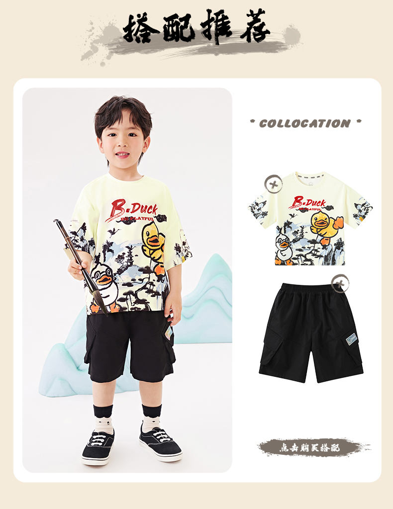 B.Duck小黄鸭童装夏季短袖T恤110-160 BF2401029