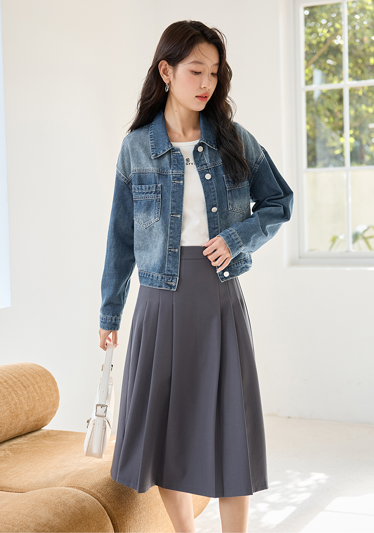 【五折购】熙世界复古牛仔外套短款小个子2025年新款春秋简约翻领牛仔上衣