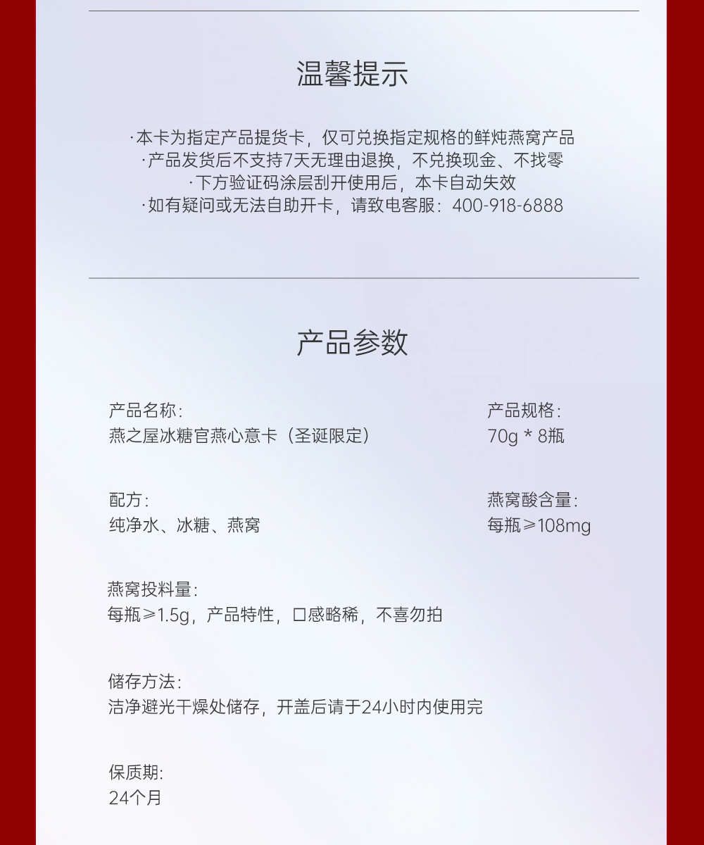 【圣诞礼品卡】燕之屋鲜炖即食燕窝70g*8瓶 限定礼盒