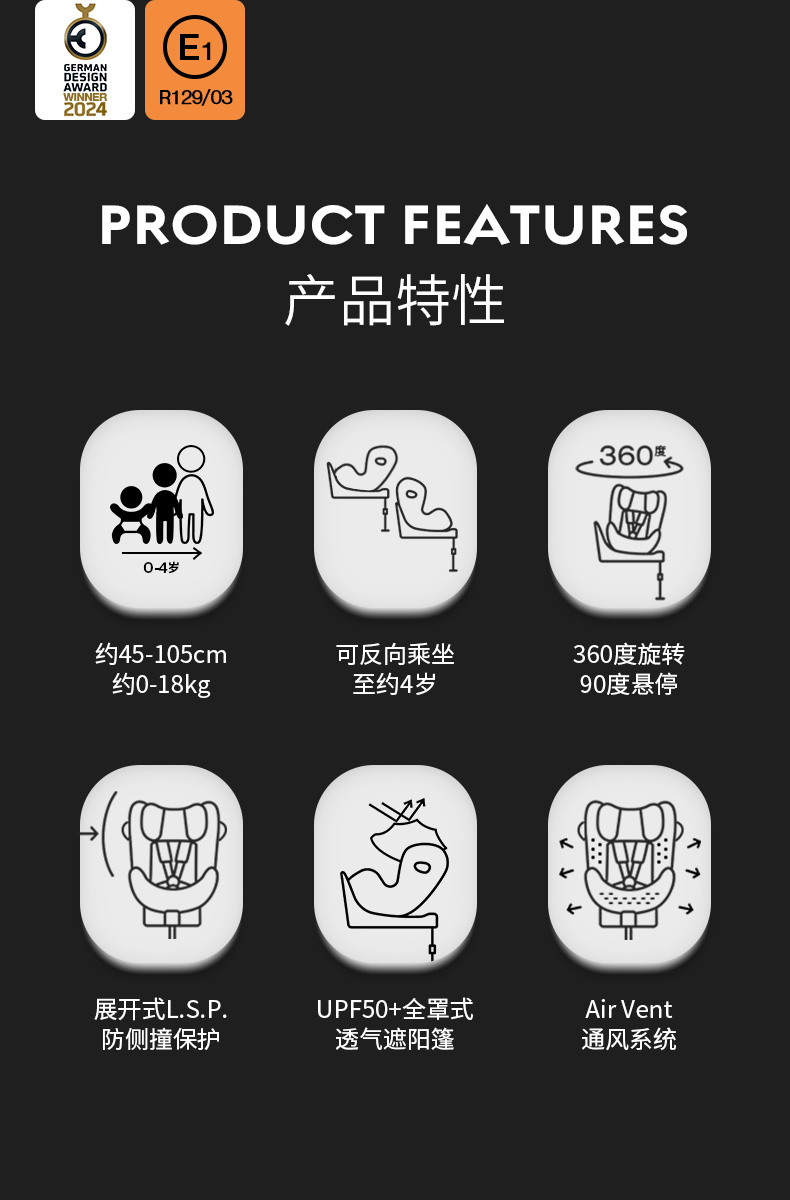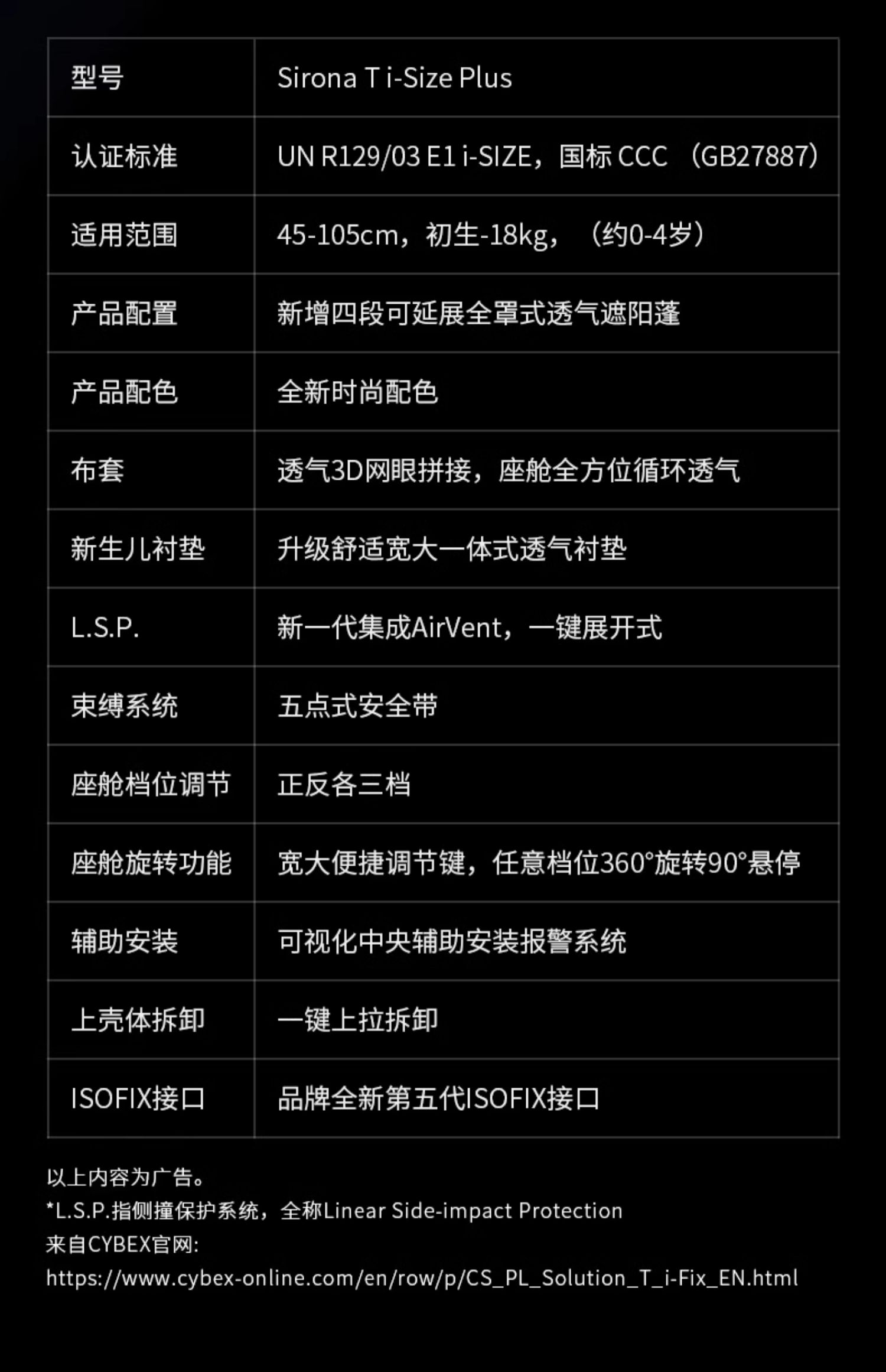 [适合0-4岁]Cybex儿童婴幼儿安全座椅斯锐诺Sirona T i-Size双标认证360度旋转