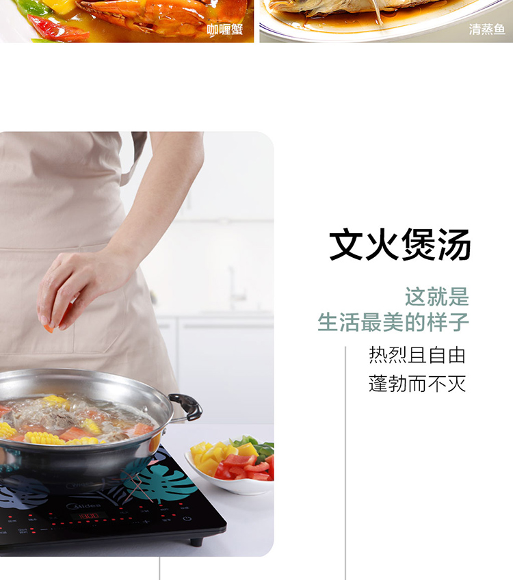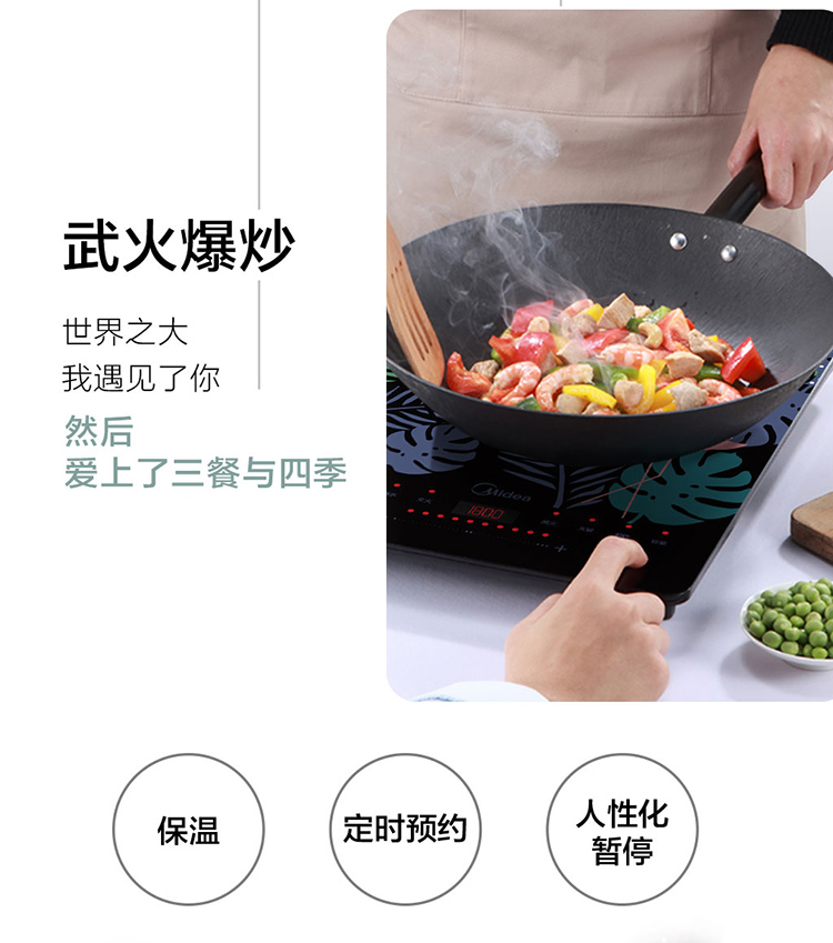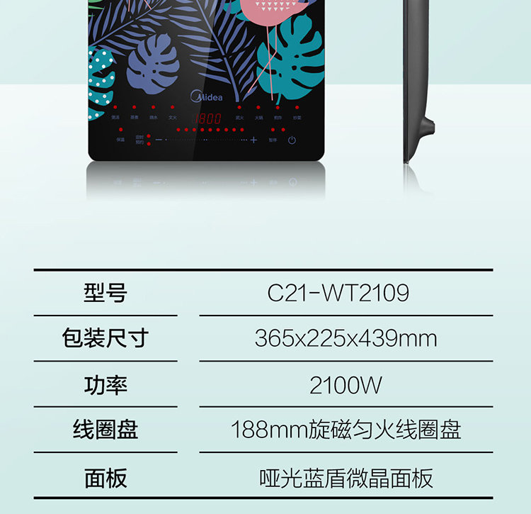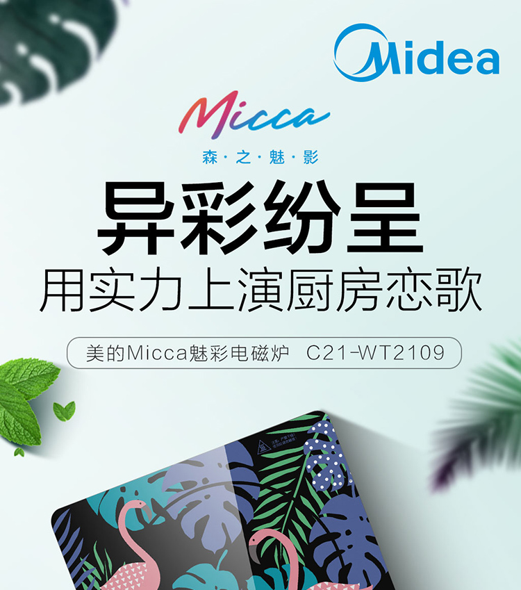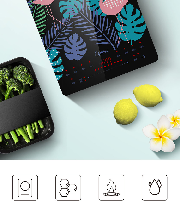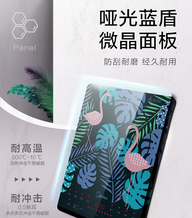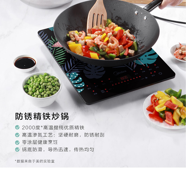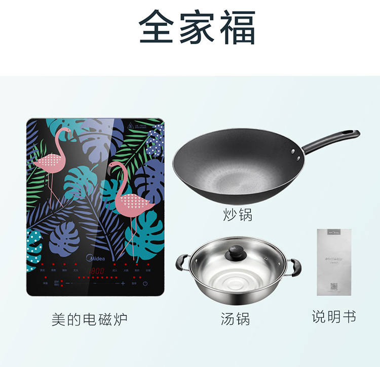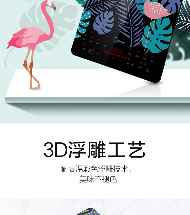 美的(Midea)电磁炉 匀火超薄机身 3D浮雕丝印 时尚彩印面板-火烈鸟 4D防水 C21-WT2109(汤锅+精铁炒锅)