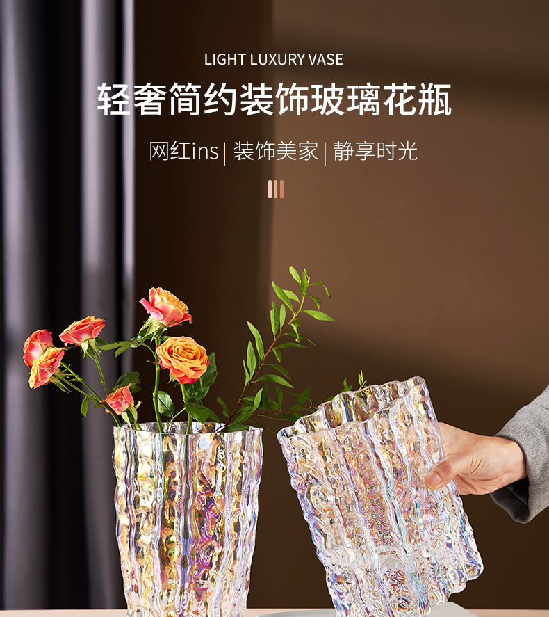 欧式简约现代创意冰冻玻璃花瓶--21冰冻