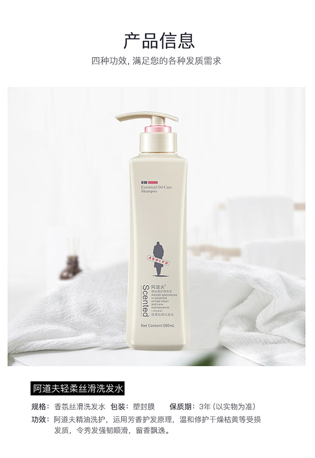 阿道夫精油香护理专研洗发水(轻柔丝滑)680ml