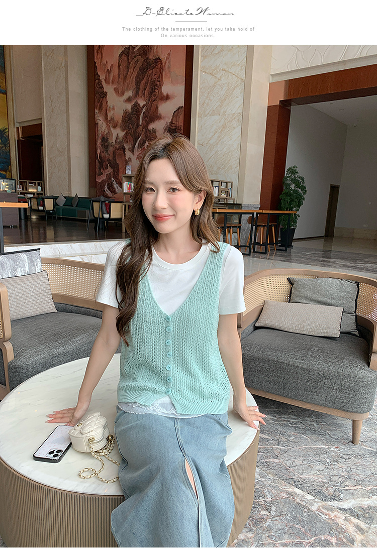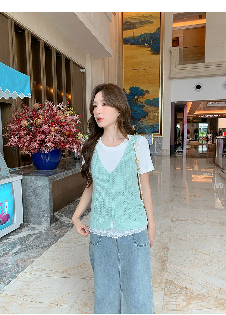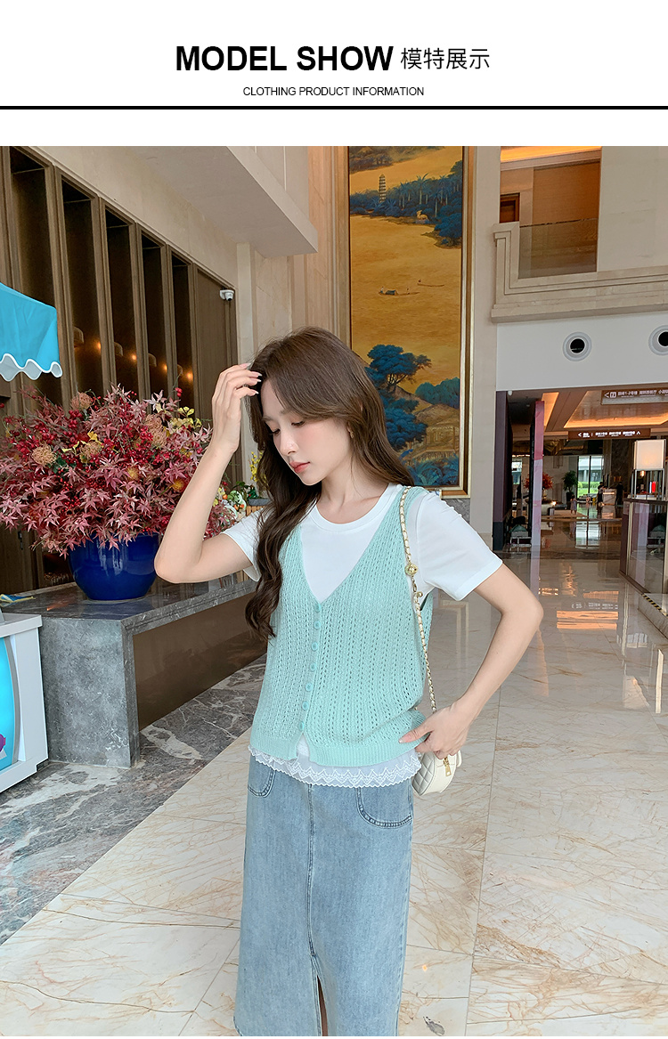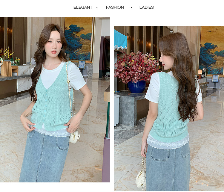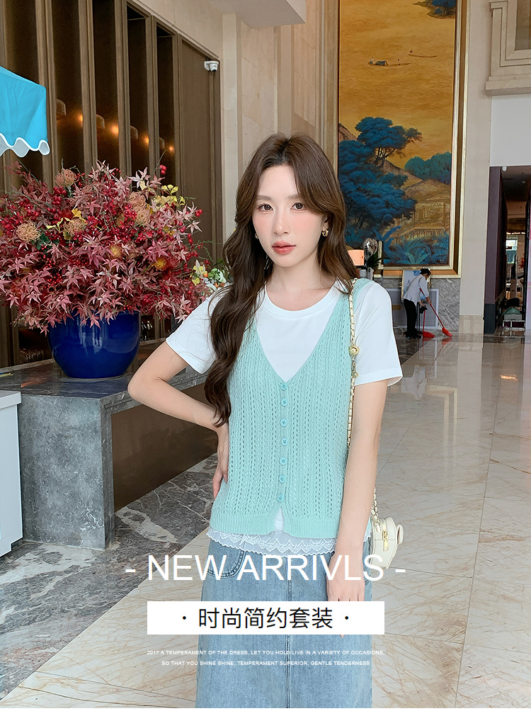 奢姿大码女装2025夏季减龄花边拼接针织背心两件套胖妹妹时尚套装9952953266AB