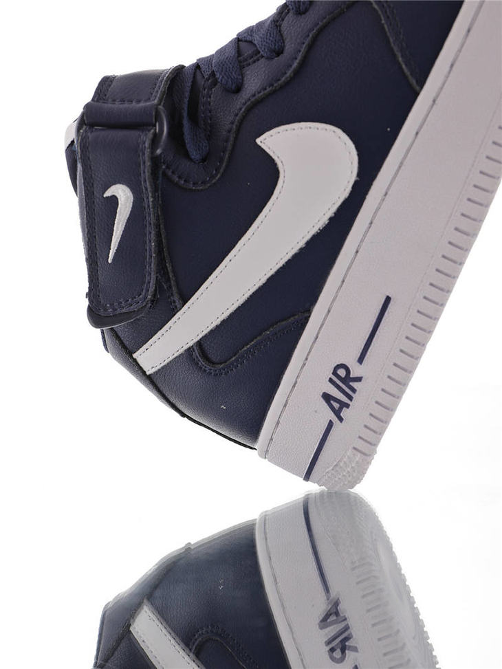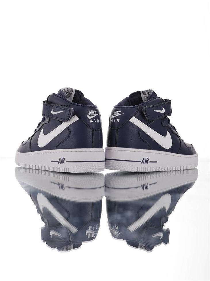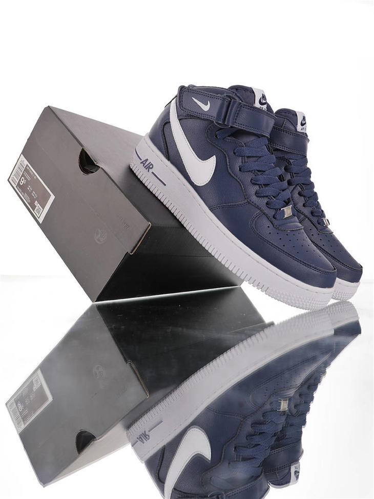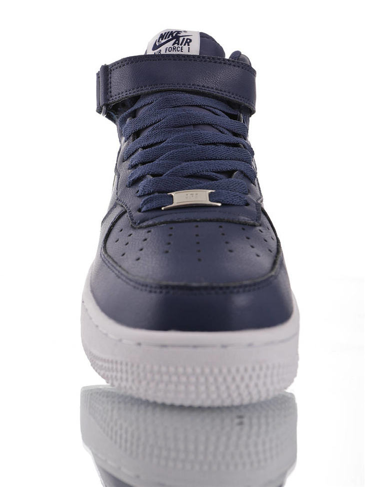 耐克Nike Air Force 1 Mid '07 原模具开发打造 采用原装客供硬质头层牛皮革材质 空军一号经典高帮百搭休闲运动板鞋 皮革深蓝白
