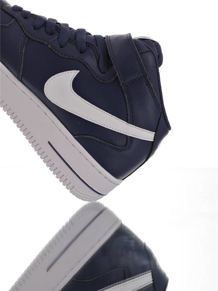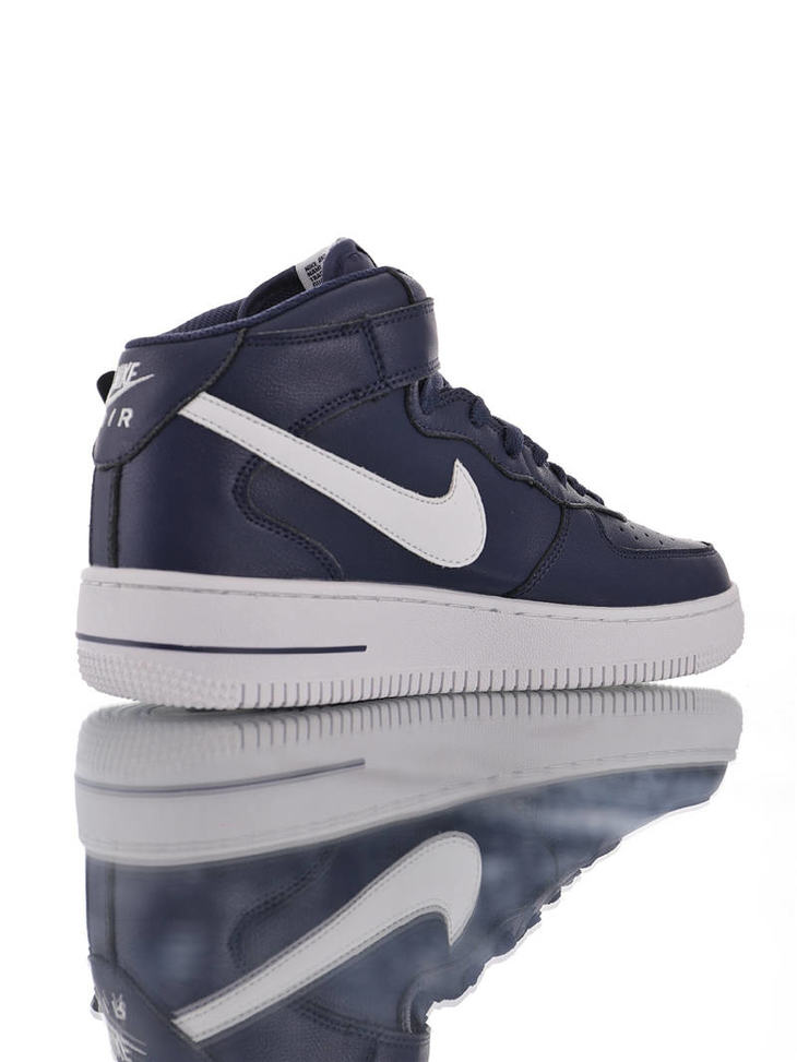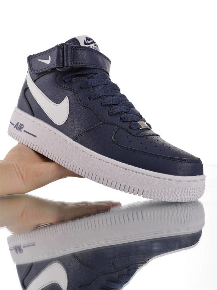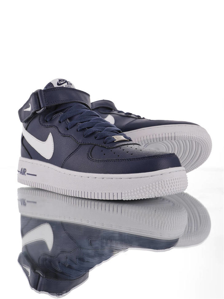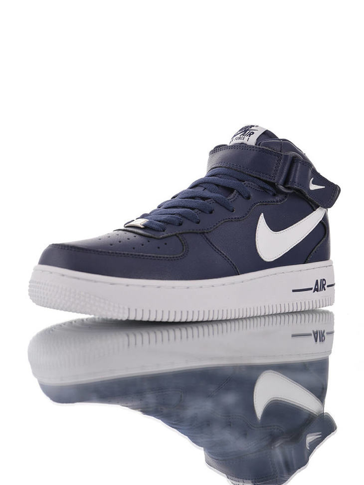 耐克Nike Air Force 1 Mid '07 原模具开发打造 采用原装客供硬质头层牛皮革材质 空军一号经典高帮百搭休闲运动板鞋 皮革深蓝白
