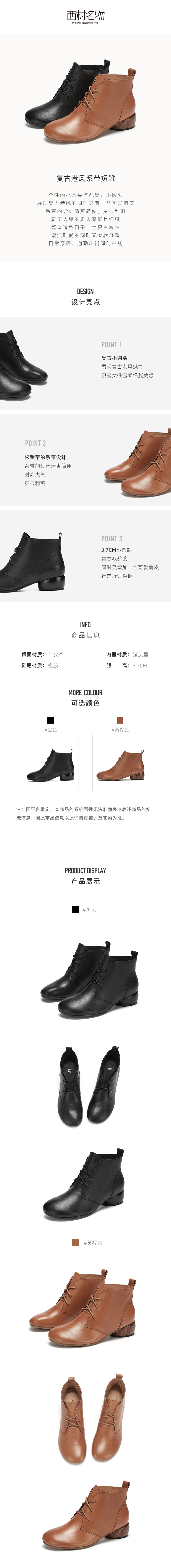 西村名物2020冬季新款短靴女中跟复古港风系带时尚马丁靴X20DS40451