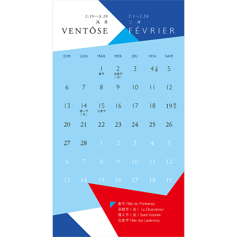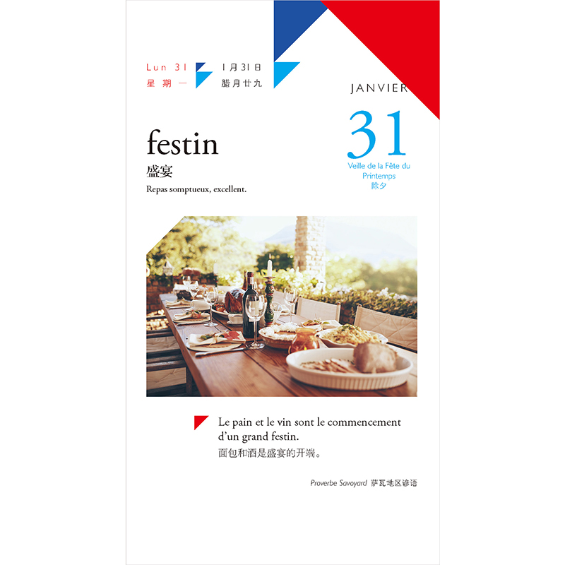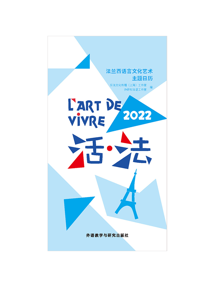 《活·法:法兰西语言文化艺术主题日历(2022)》将美食、文学、音乐、绘画、电影、语言及文化符号等主题以每日词条的形式排布,搭配形象化或可感度高的图片或设计元素。月份页呈现月份对应的法兰西共和国历别称;日期页除日期元素外呈现当日主题词、相应解释或引言例句和图片,致力于呈现鲜活的法兰西文化形象,启发、伴随读者探索、度过每一日的生活。其中词条、引言例句、风物简介均为法语搭配汉语译注的形式,以期尽可能辐射到不同法语水平的、对法语或法国文化感兴趣的读者。所有例句均选自真实的语料,帮助读者更好地在法语和汉语间建立联系。