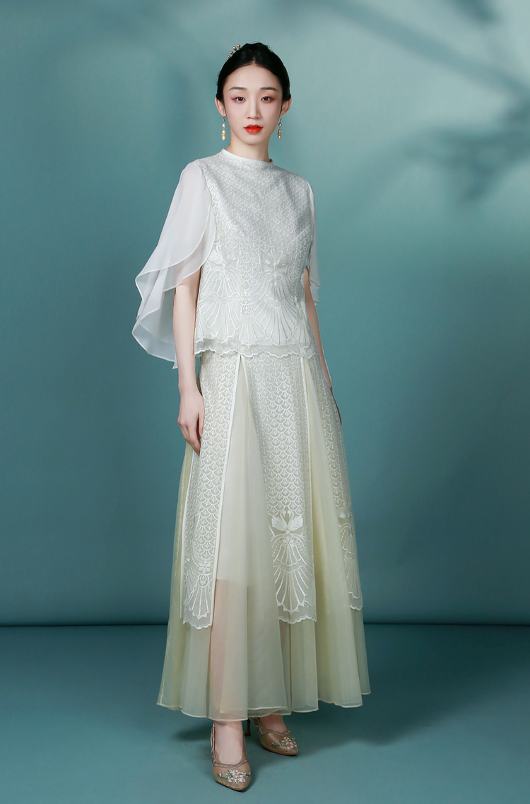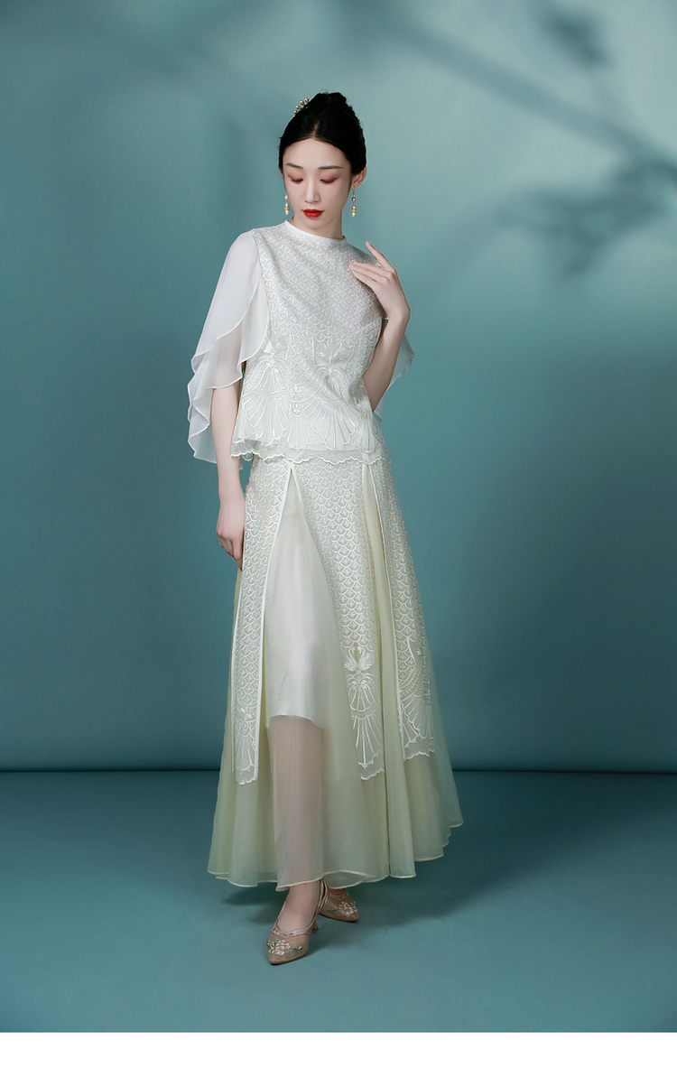 吉祥衣家新中式国风春夏新款高端气质显瘦修身女装琨玉秋霜上衣