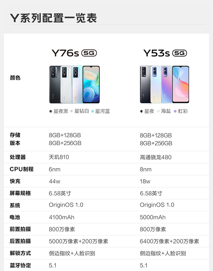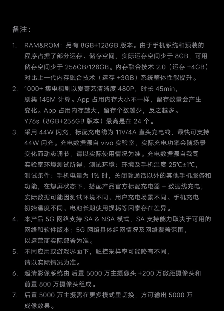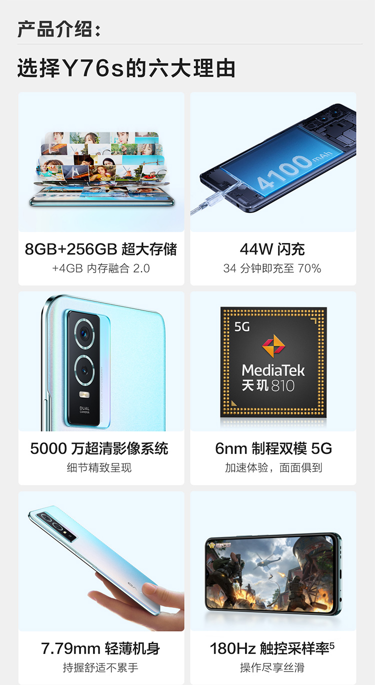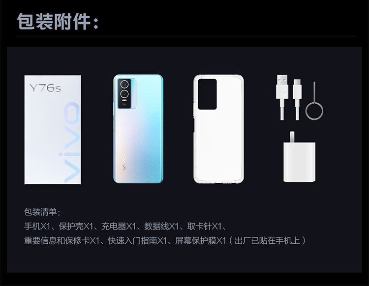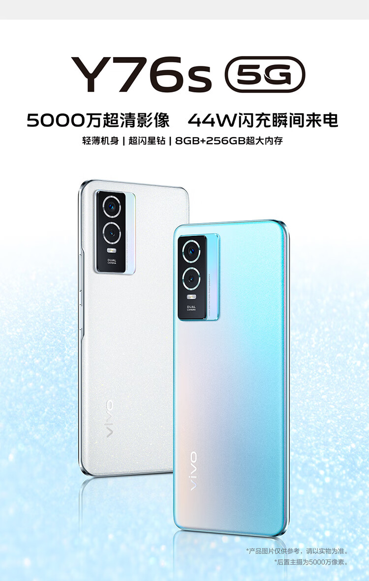 vivo Y76s 智能手机 轻薄机身 超闪星钻 5000万超清影像 44W闪充瞬间来电