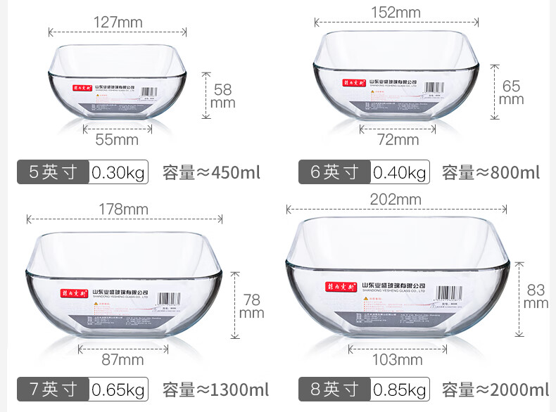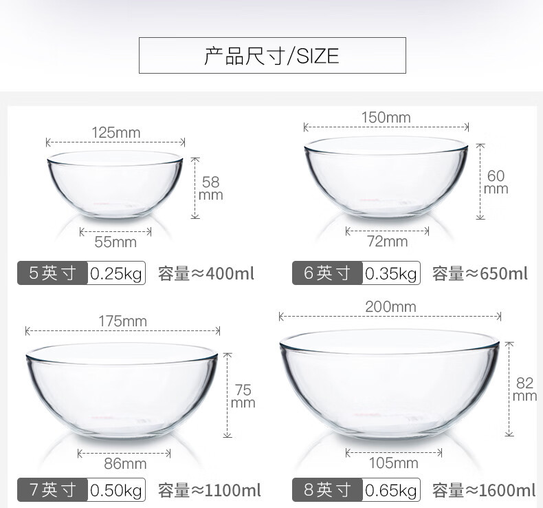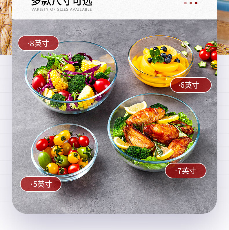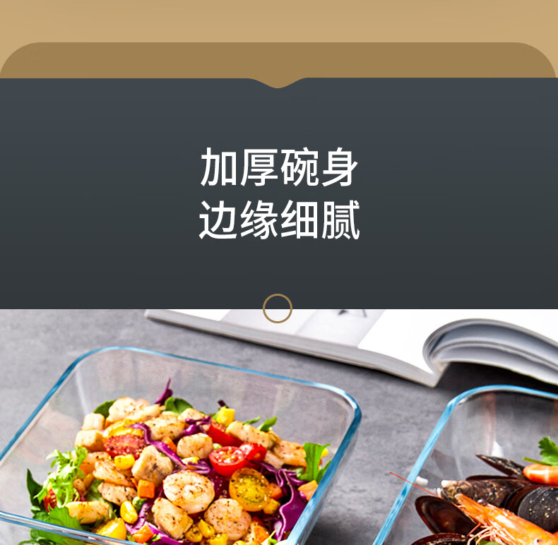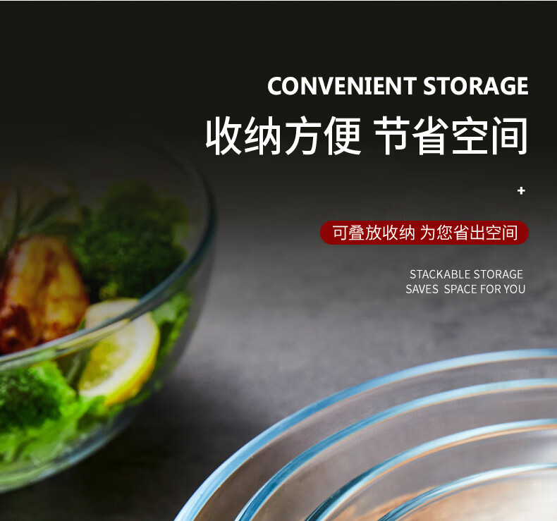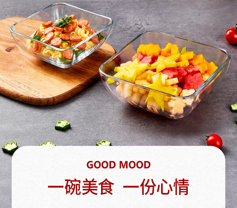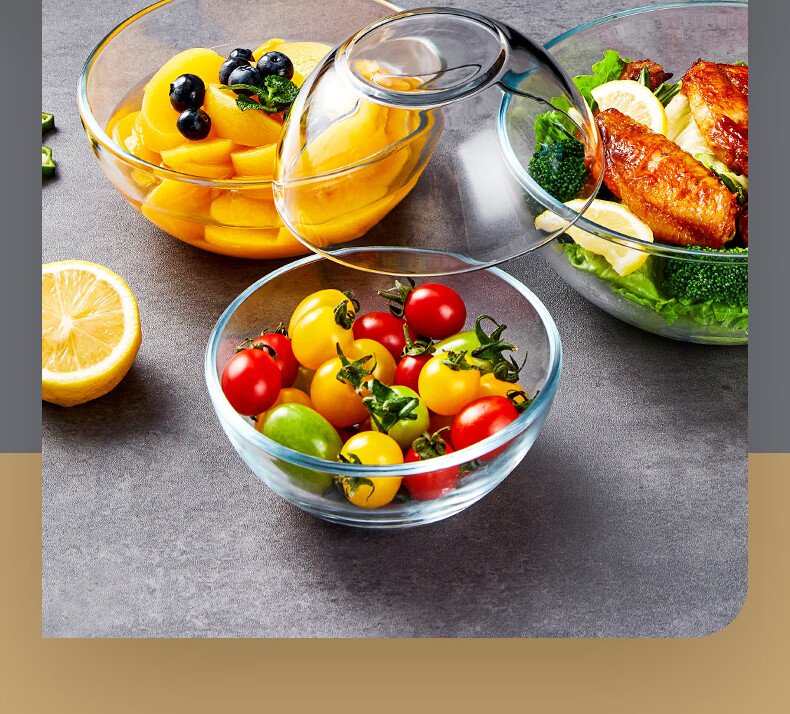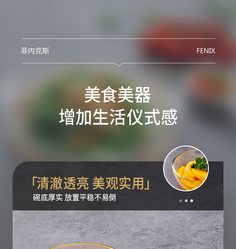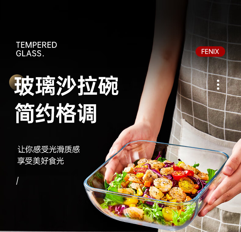 菲内克斯 钢化玻璃沙拉碗 微波炉适用耐热家用欧式泡面甜品水果酸奶碗