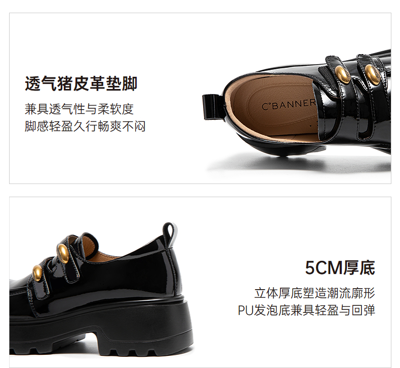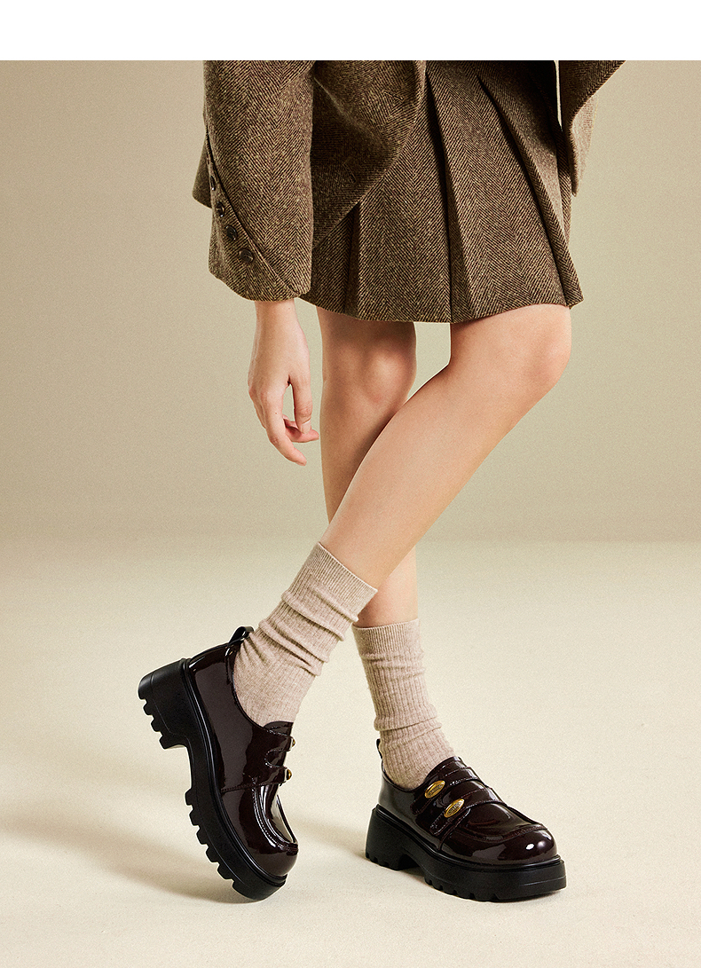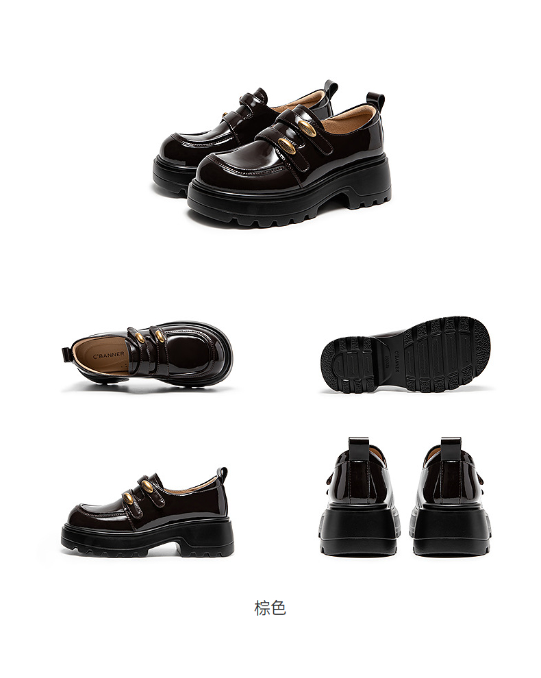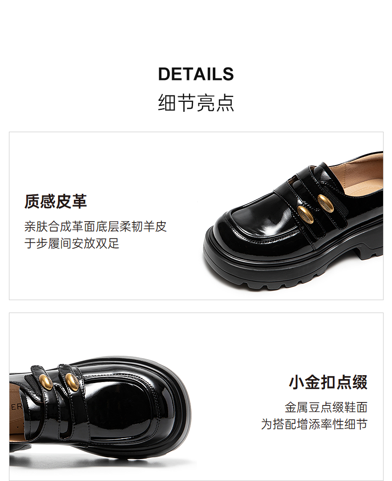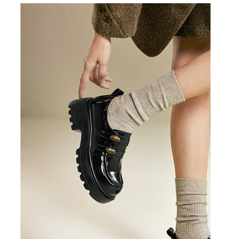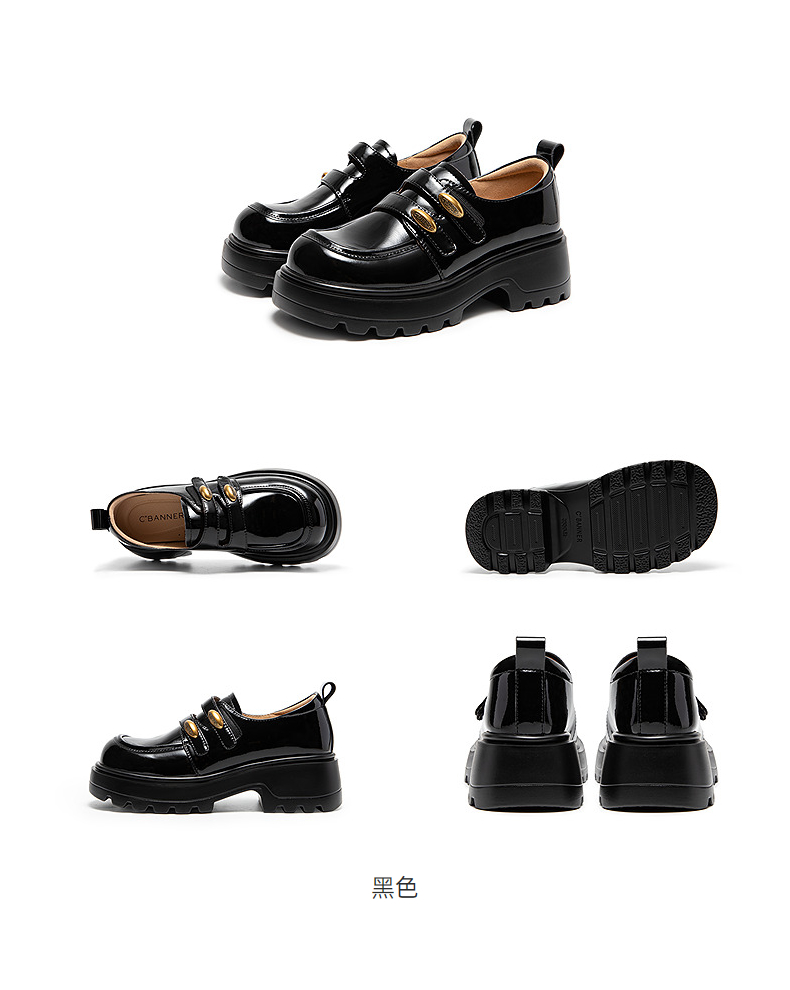【上新】千百度漆皮厚底乐福鞋女2026春季新款增高黑色小皮鞋圆头深口单鞋A26138005