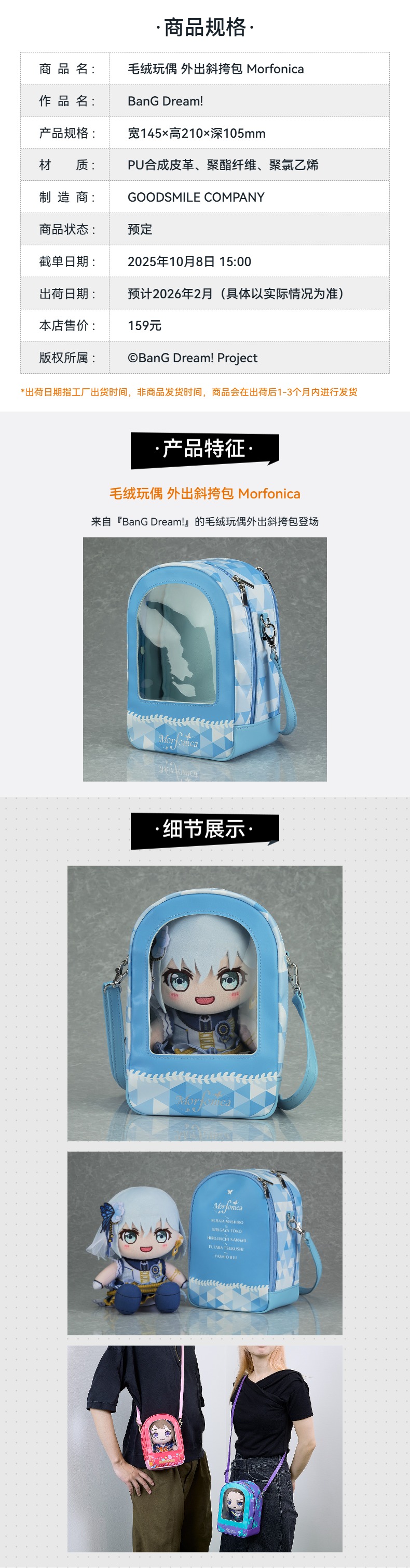 【GSC预售定金】毛绒玩偶 外出斜挎包 Morfonica BanG Dream!