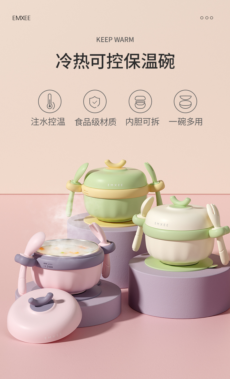 嫚熙宝宝辅食碗婴儿专用吸盘碗研磨儿童餐具注水保温碗★★