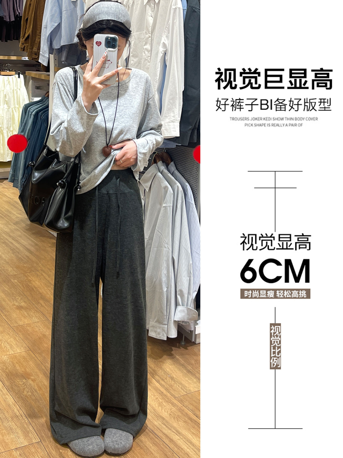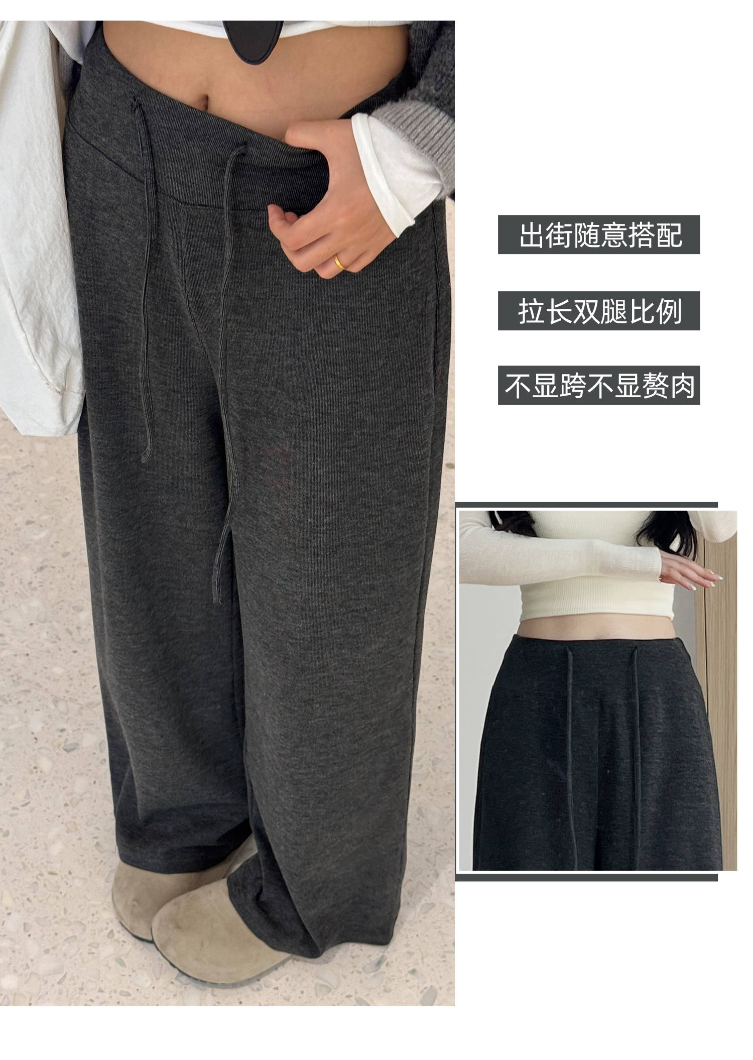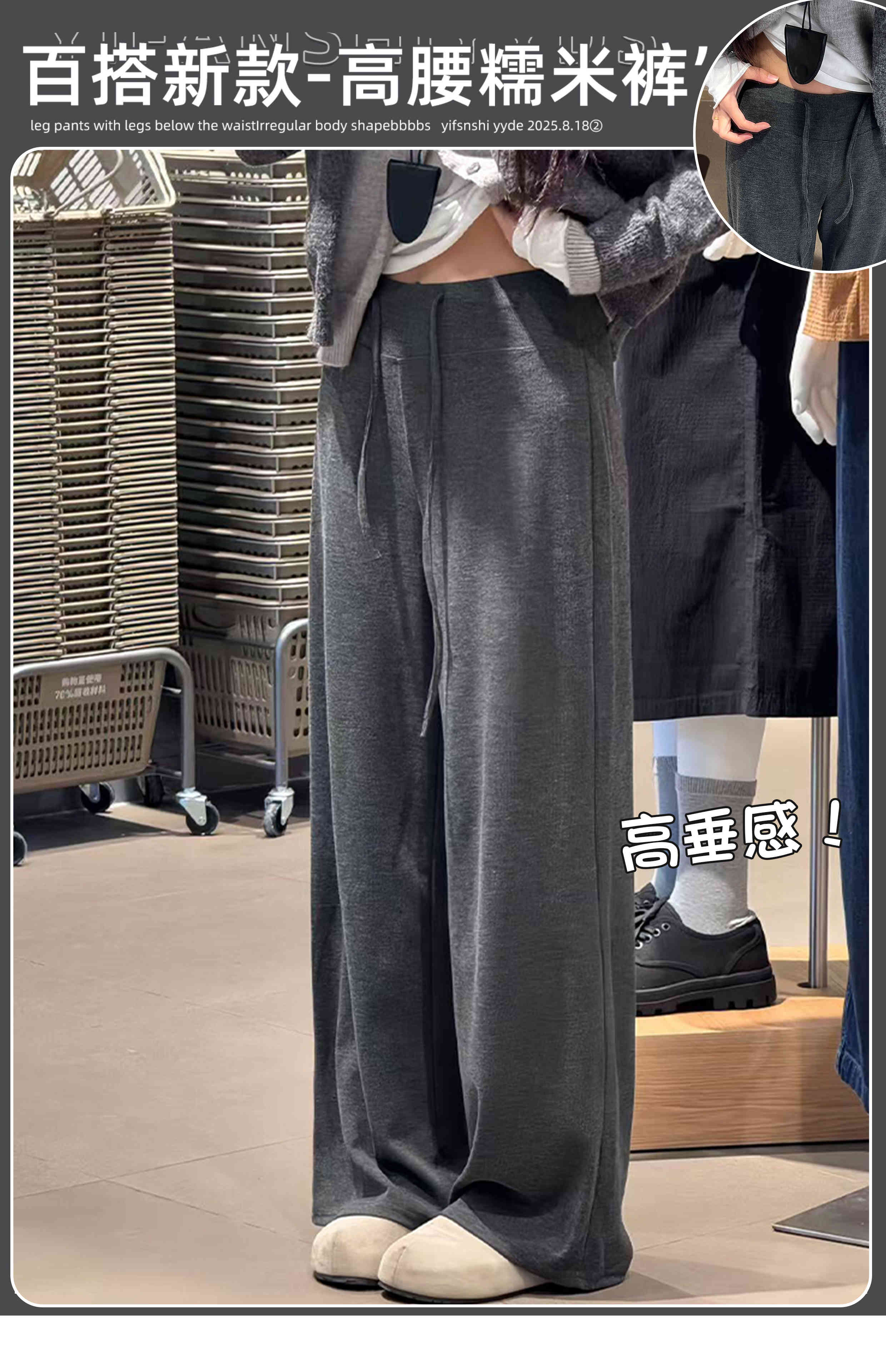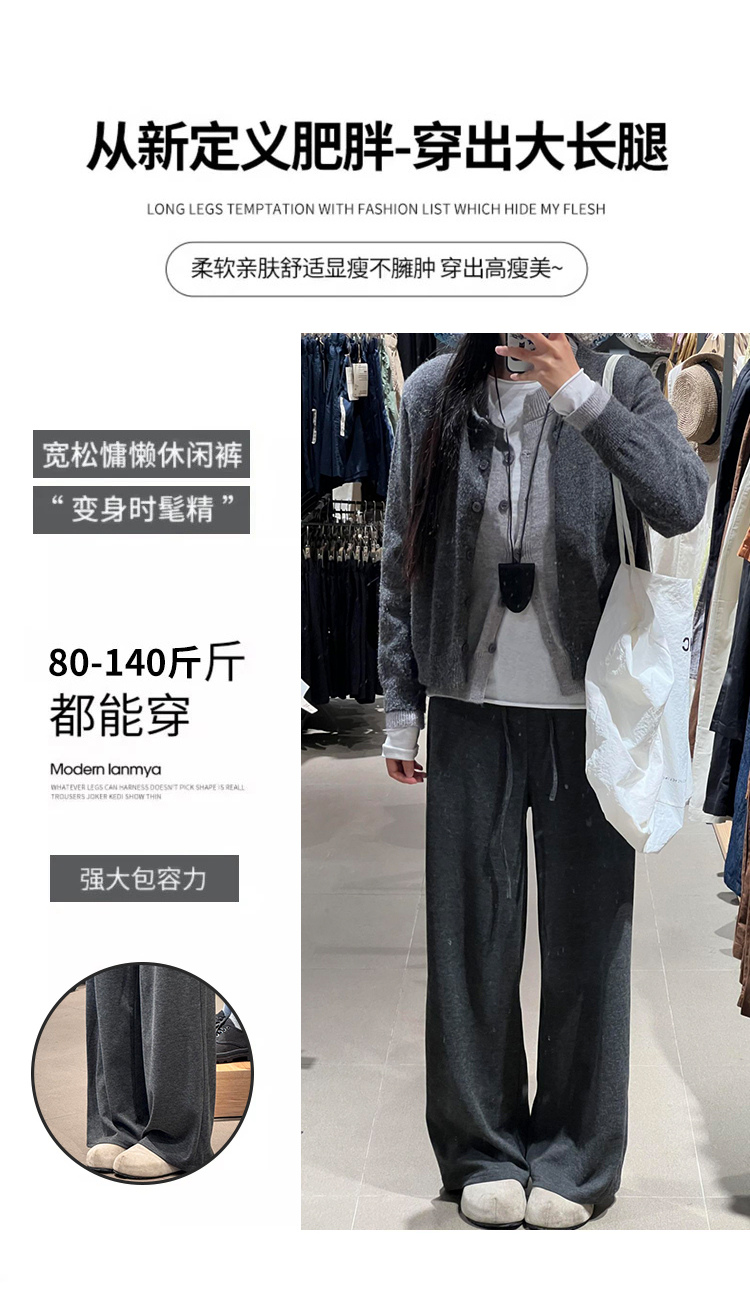 深灰色糯米裤女春2026新款小个子高腰宽松显瘦慵懒风垂感阔腿裤聚★为爱严选
