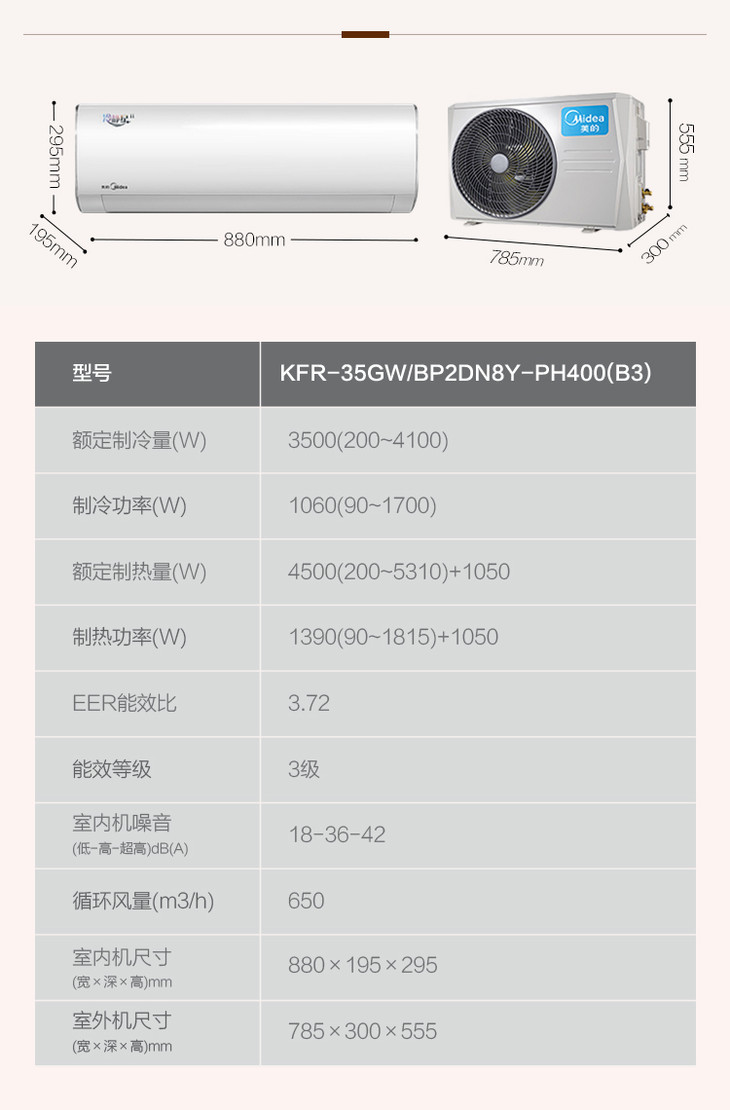 美的空调PH400 挂机 冷暖壁挂式卧室空调 冷静星二代