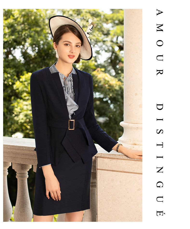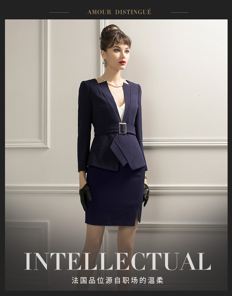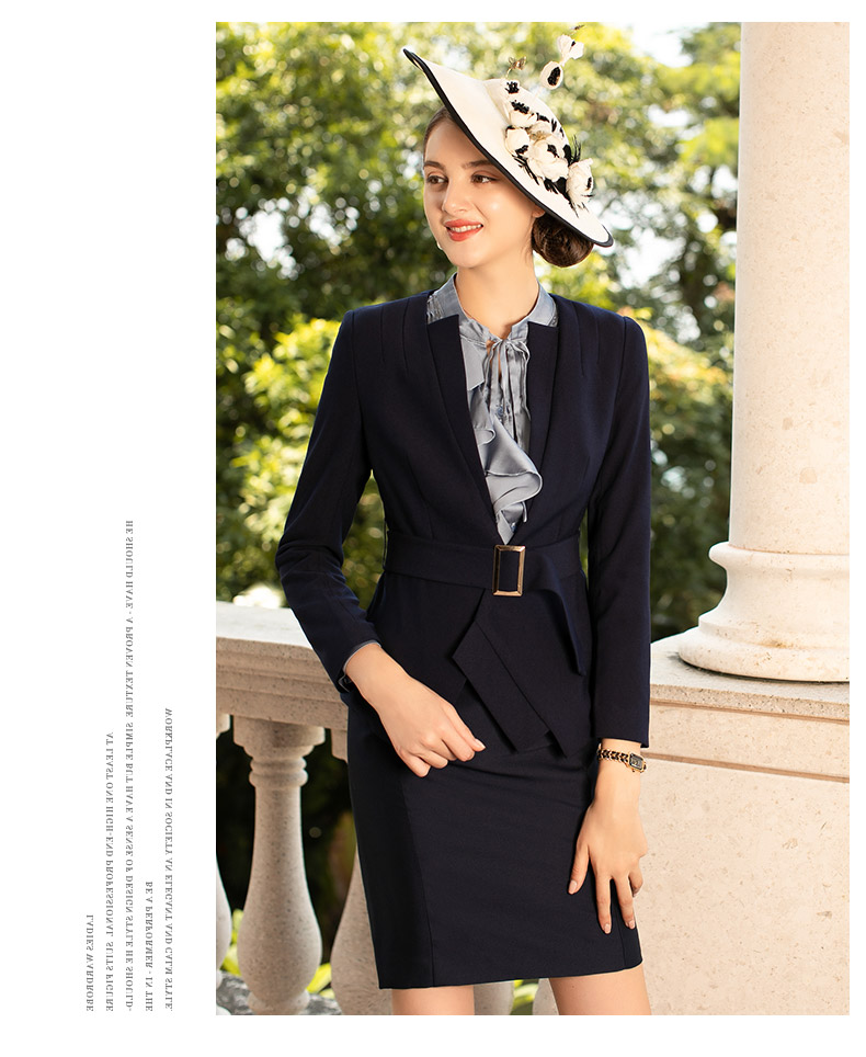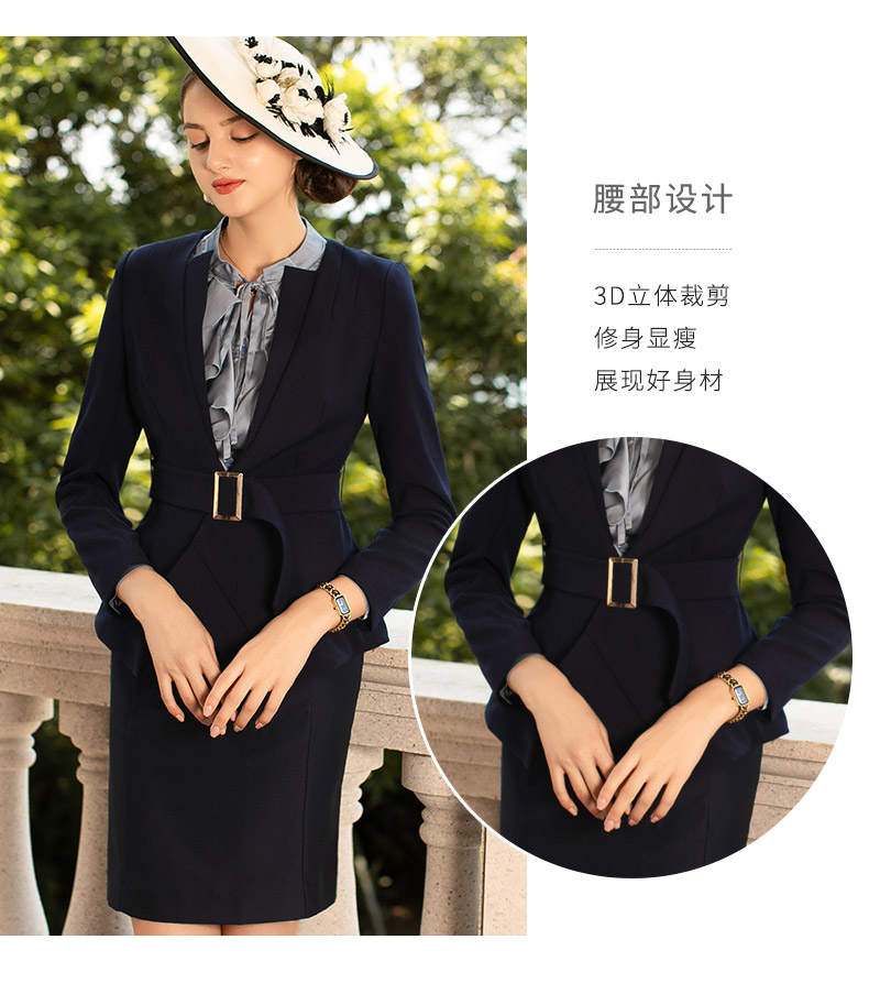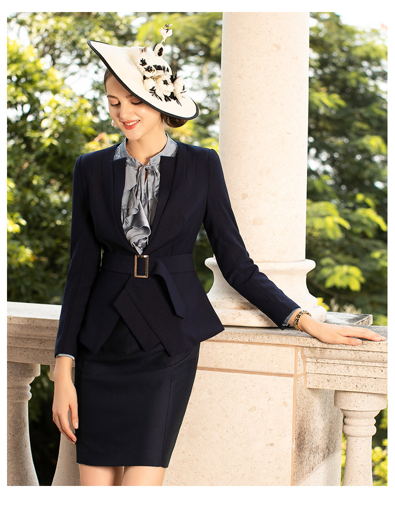 IWY/藏青色长袖西装半裙套装女士职业装气质套裙CS88