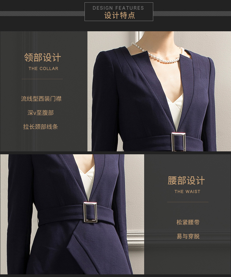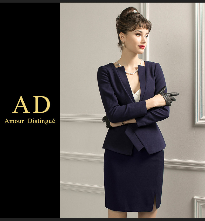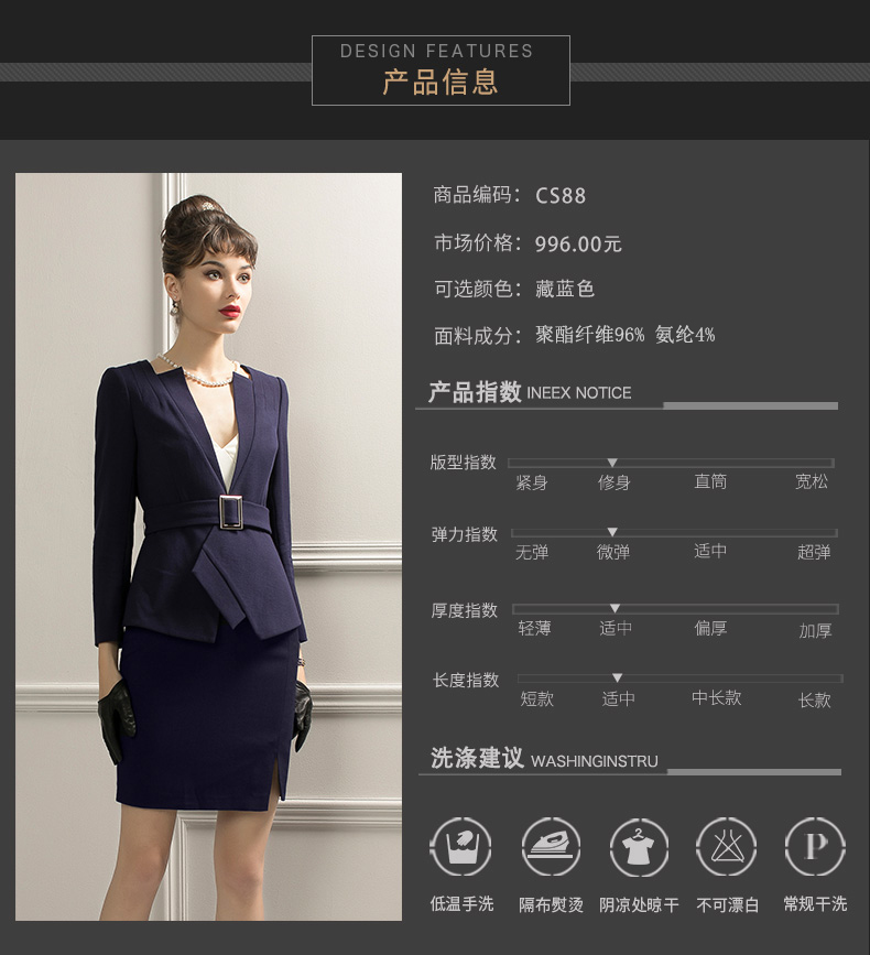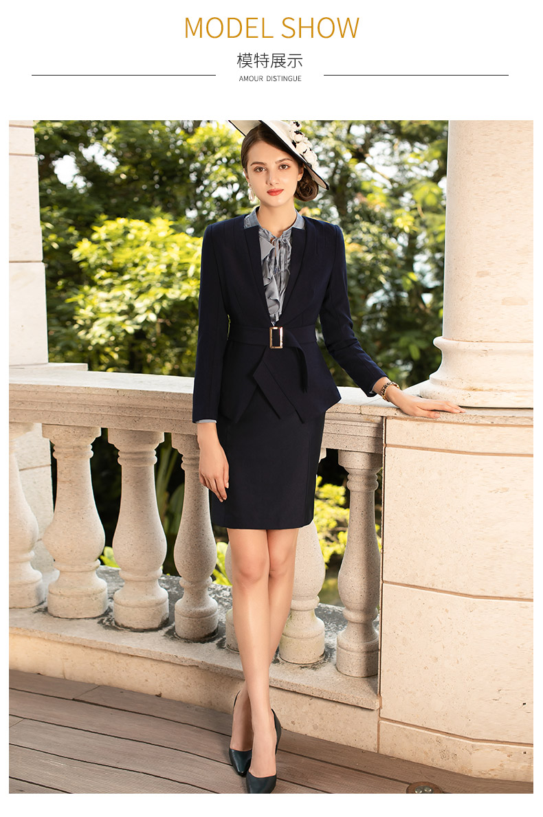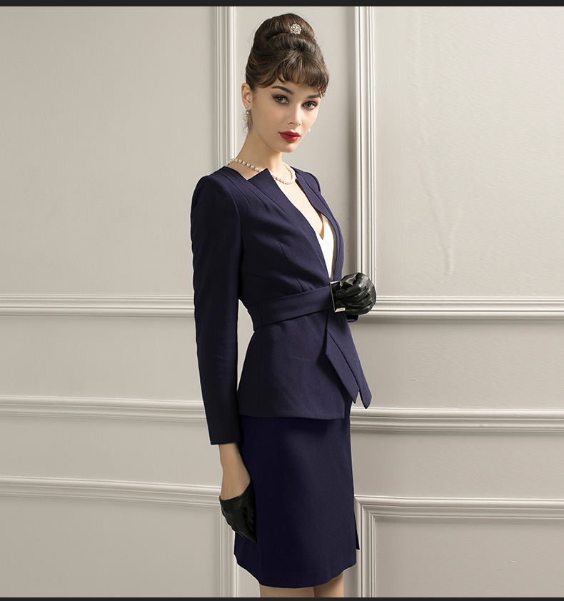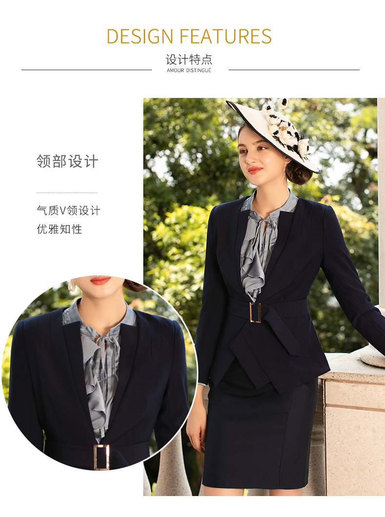 IWY/藏青色长袖西装半裙套装女士职业装气质套裙CS88