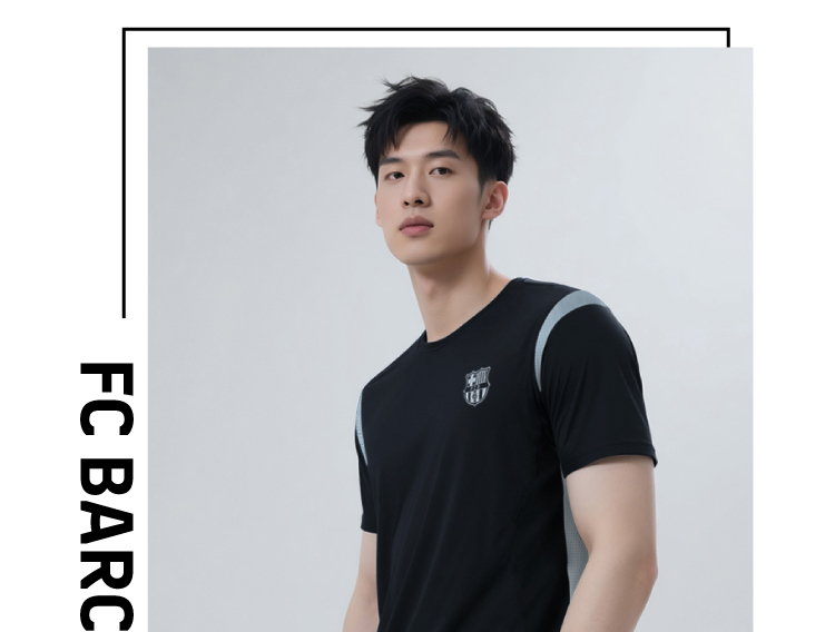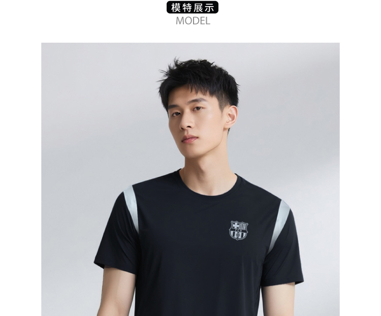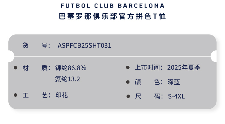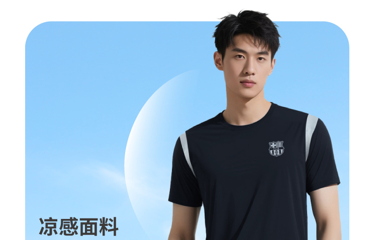 【官方正版】巴塞罗那俱乐部|巴萨深蓝拼色T恤夏季运动通勤凉感短袖