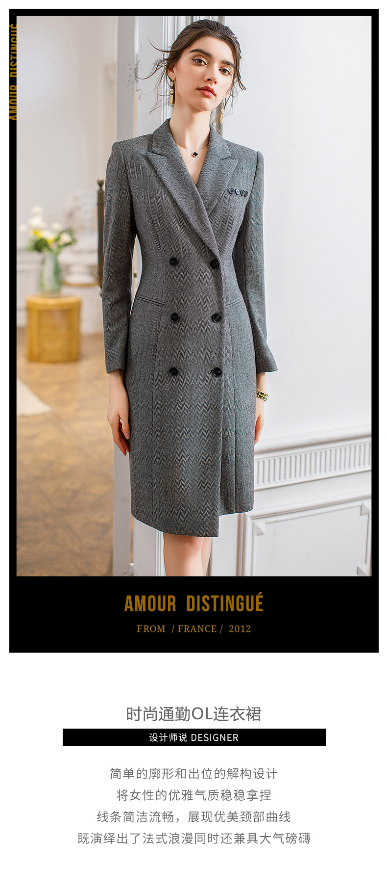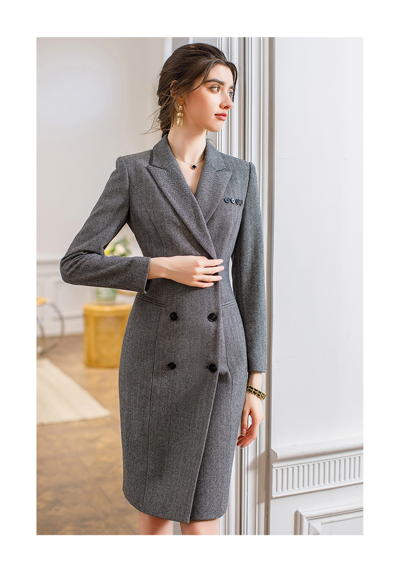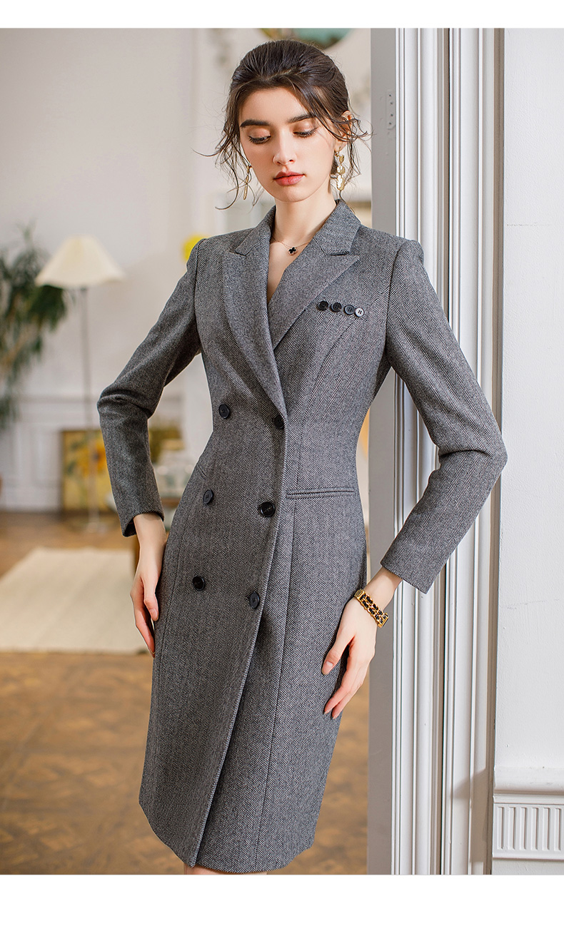 IWY/灰色人字纹呢子大衣冬新款羊毛外套中长款职业装工作服Q808
