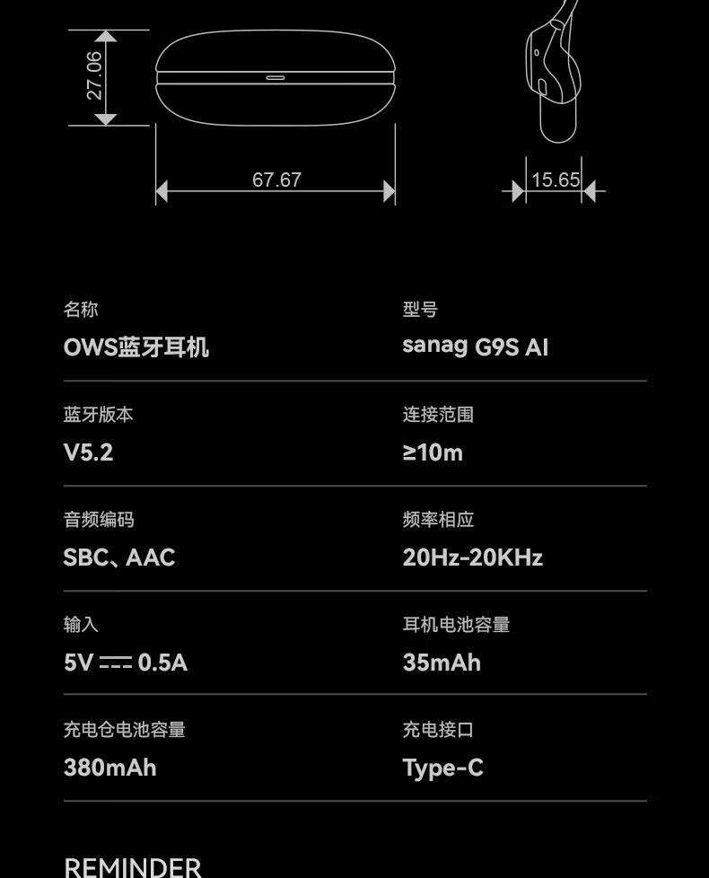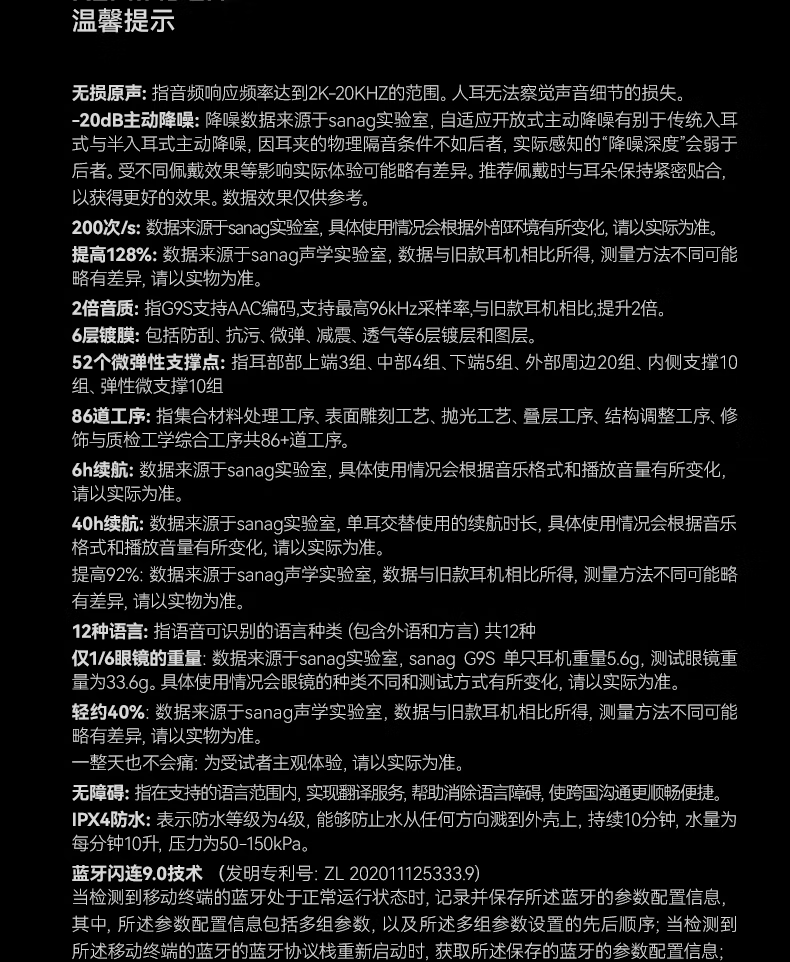 Sanag 塞那耳挂式AI耳机 G9S AI