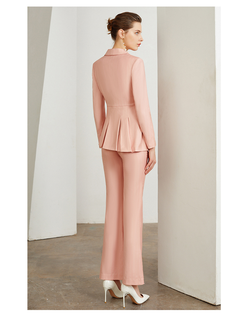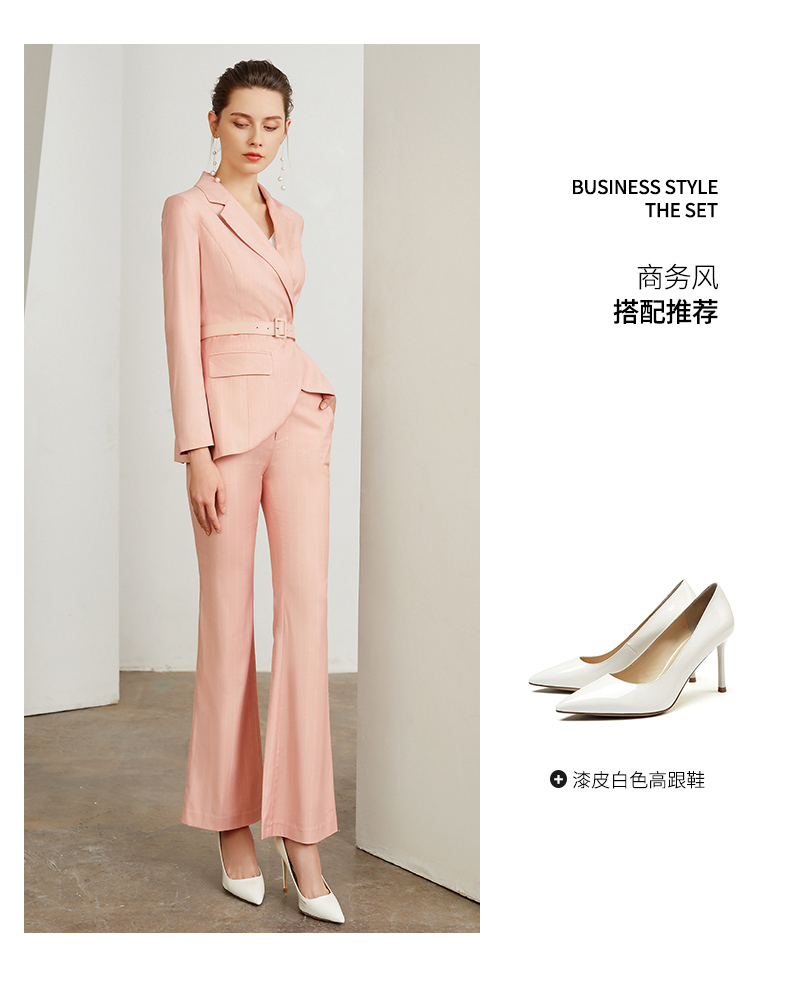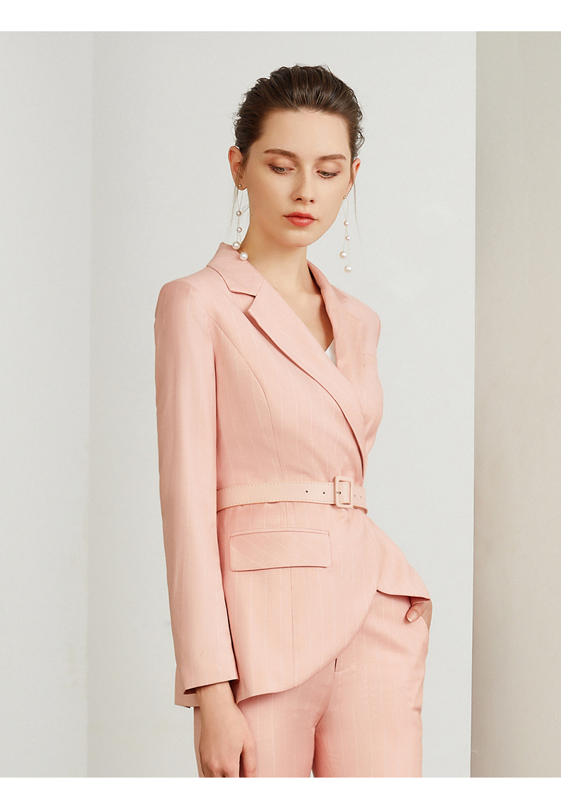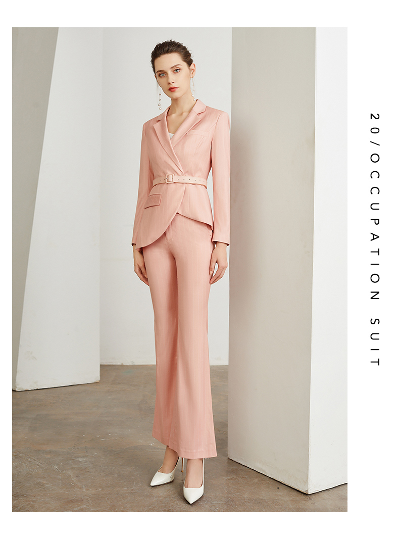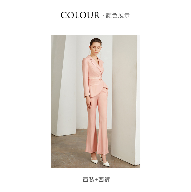 IWY/粉色小香风西服西装套装女修身系带收腰时尚气质名媛职业上班面试CP937