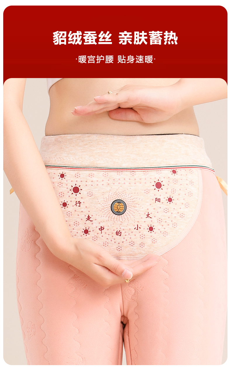 腰头护宫贴片:聚酯纤维73.3%氨纶12.4%粘纤11%貂绒1.8%蚕丝1.5%