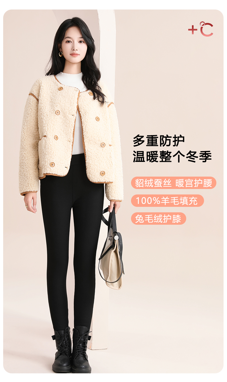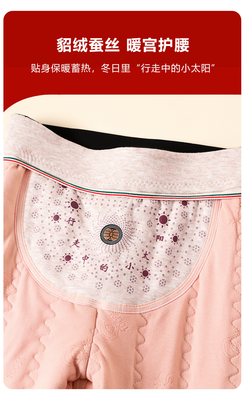 雪中飞貂绒蚕丝100%羊毛光感保暖裤 800g巨厚 高弹不勒 暖宫护腰 保暖显瘦 82402