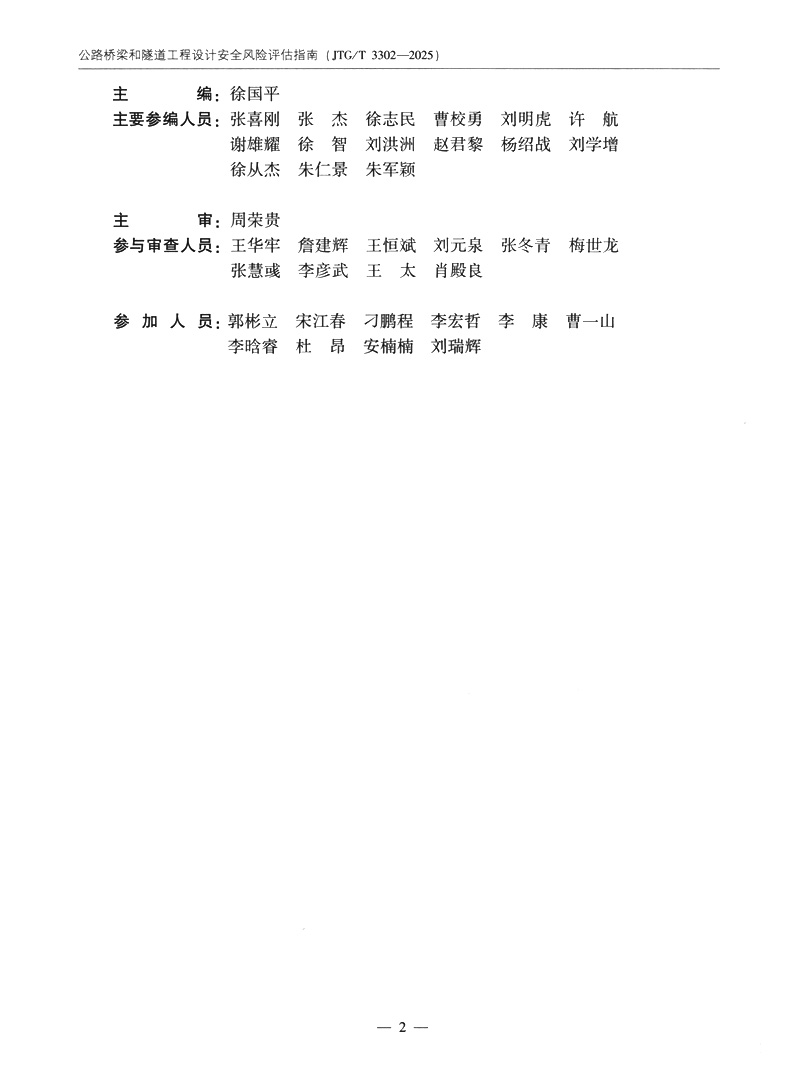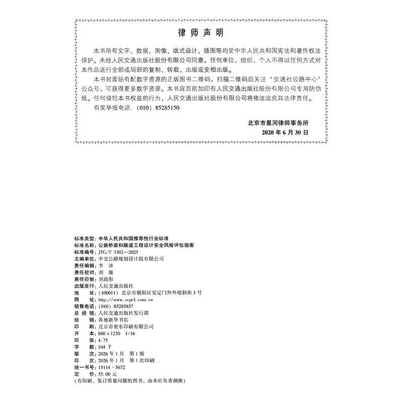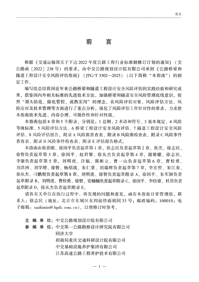 书名:公路桥梁和隧道工程设计安全风险评估指南(JTG/T 3302—2025)