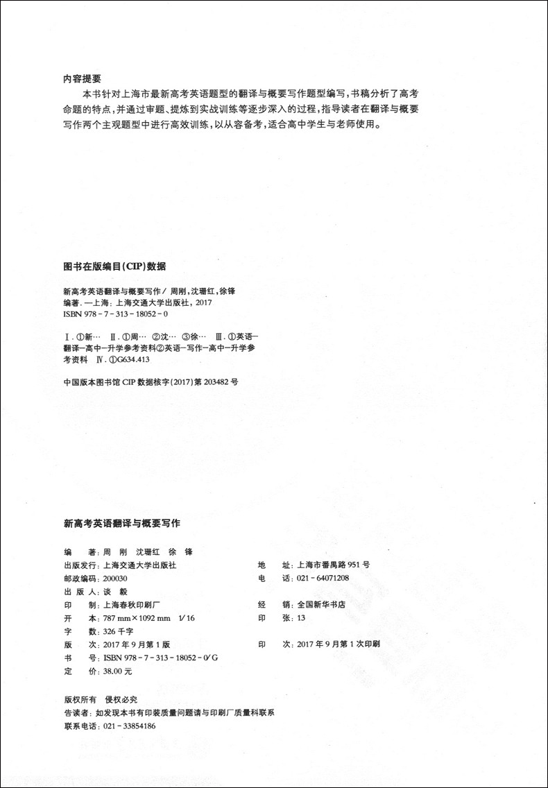 正版 新高考英语翻译与概要写作 上海交通大学出版社 高一高二高三学生适用 上海学生英文报 高中英语专题精讲丛书
