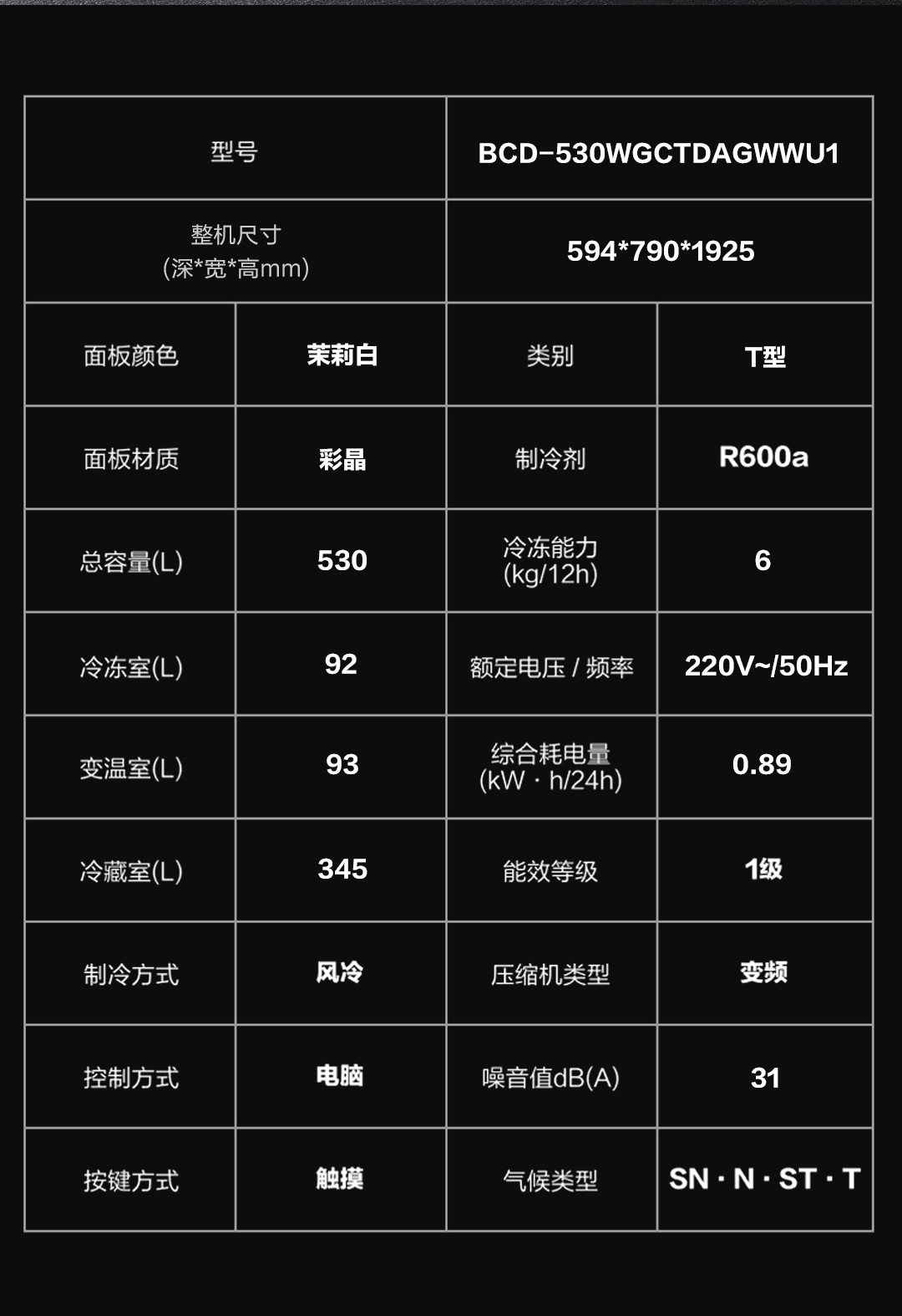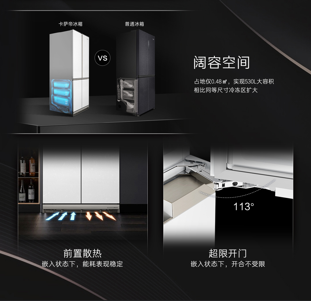 卡萨帝冰箱BCD-530WGCTDAGWWU1 原创平嵌|MSA氮氧智控|智慧动态除菌净化自动制冰机|-30°C+深冷智冻|智能WIFI