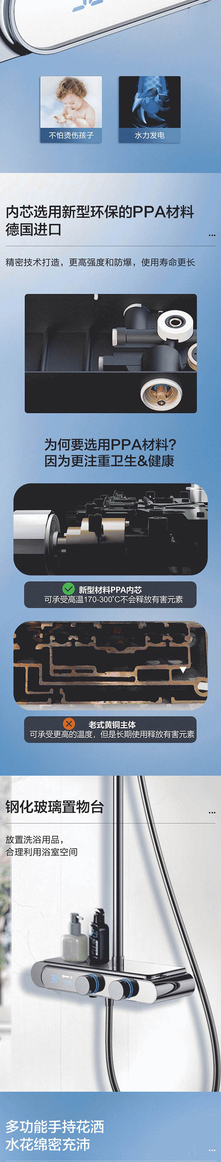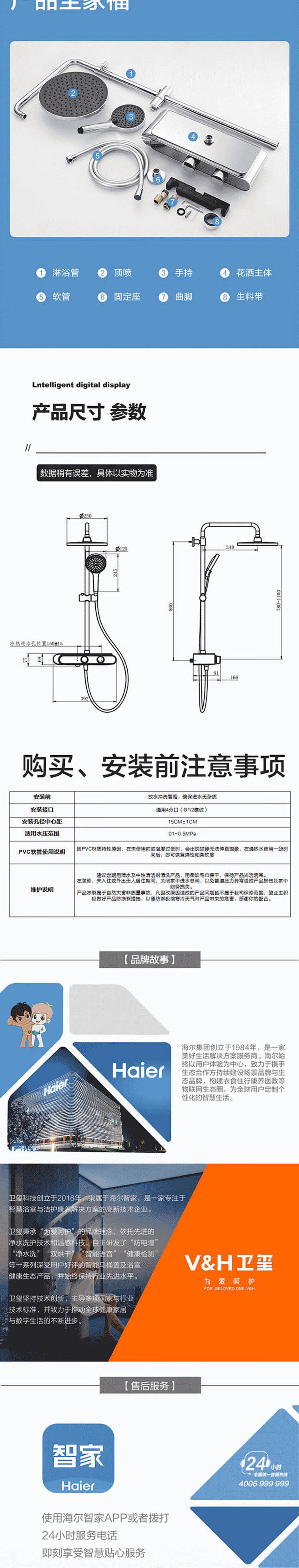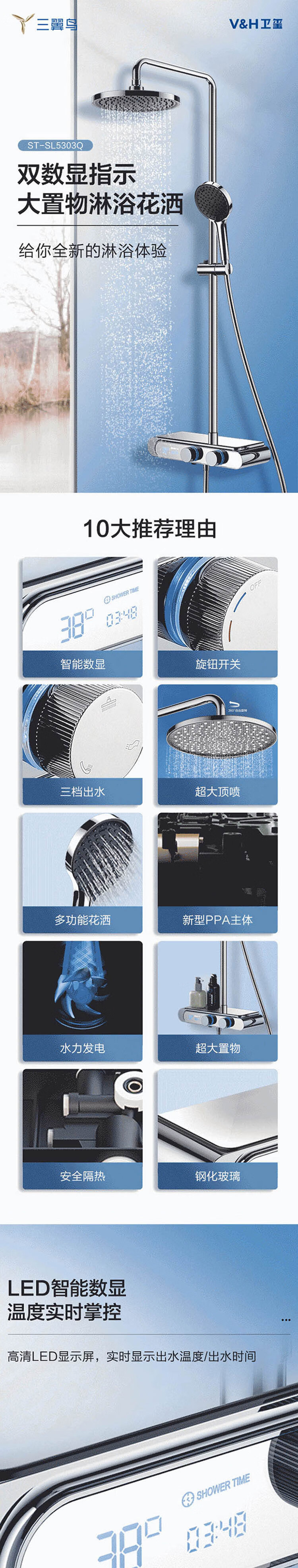 海尔 家用淋浴花洒全套装 卫玺数显调温三功能淋浴器ST-SL5303Q 403mm超大置物平台+10寸圆形顶喷