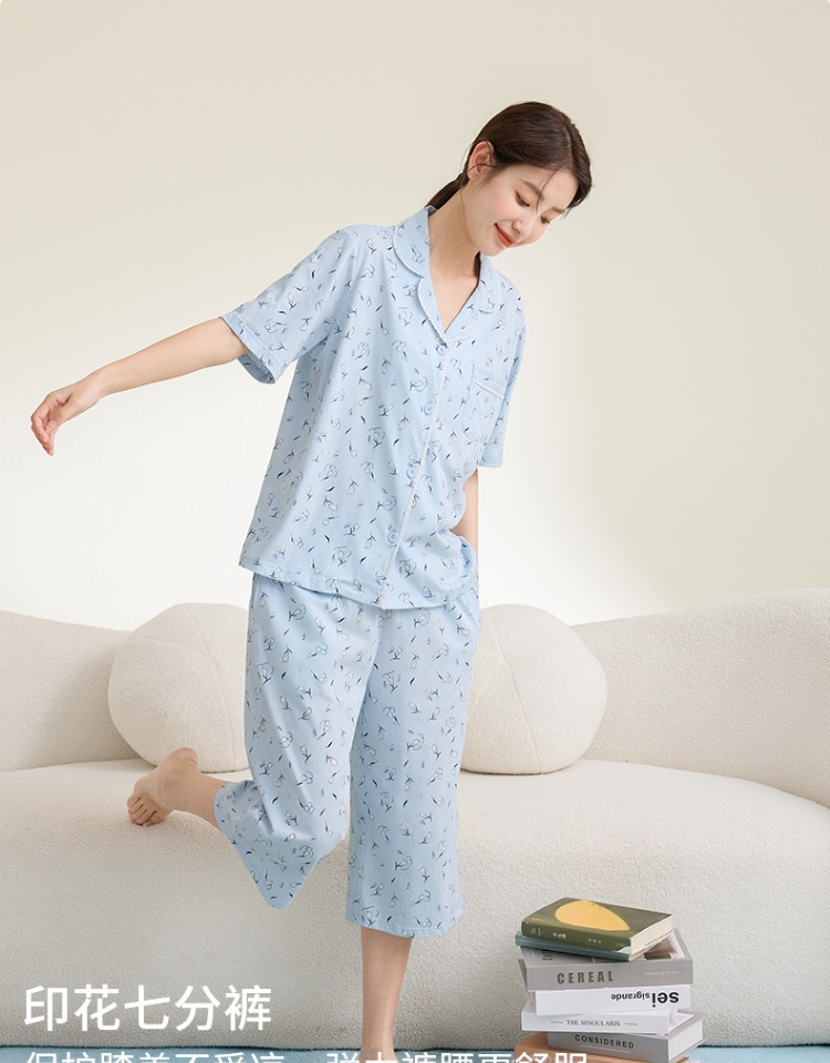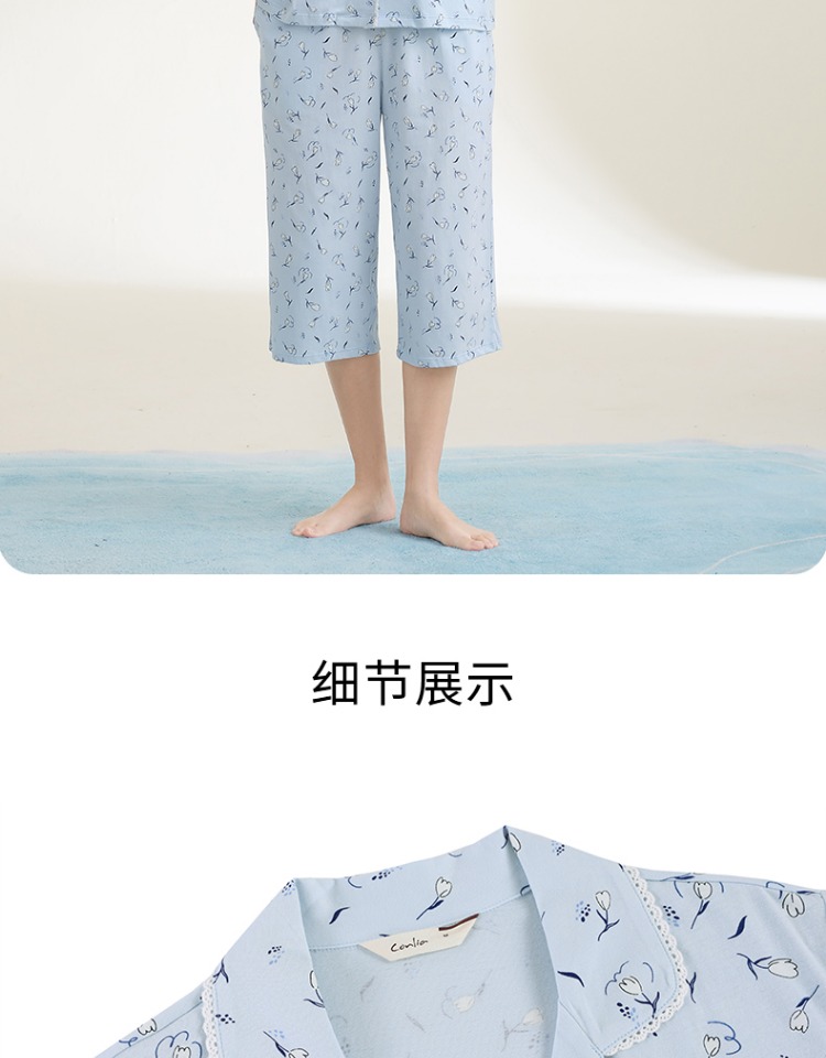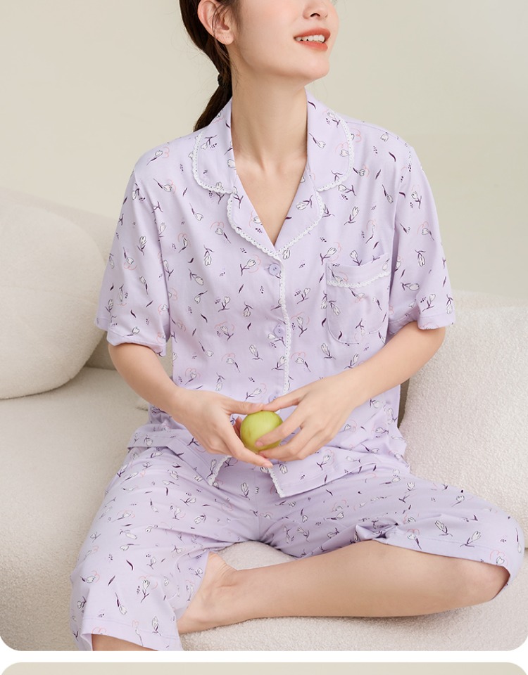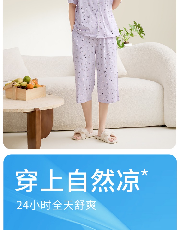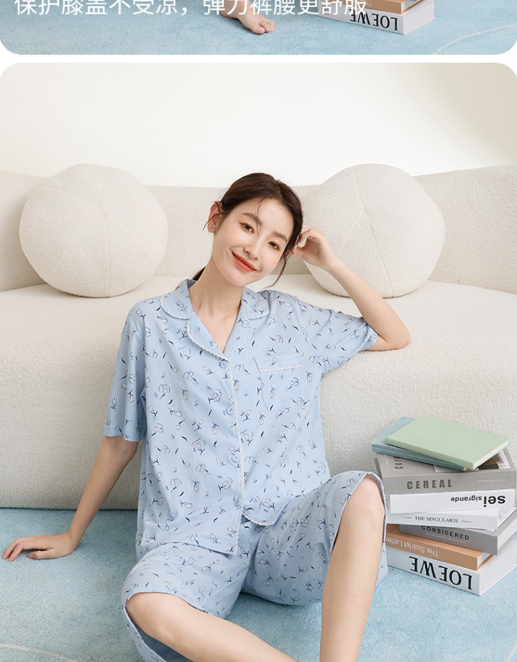 康妮雅女式短袖中裤开襟套装