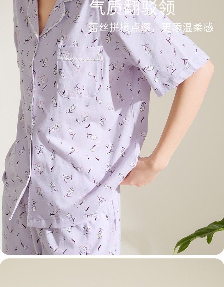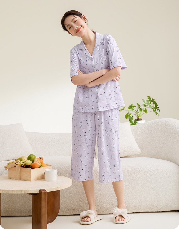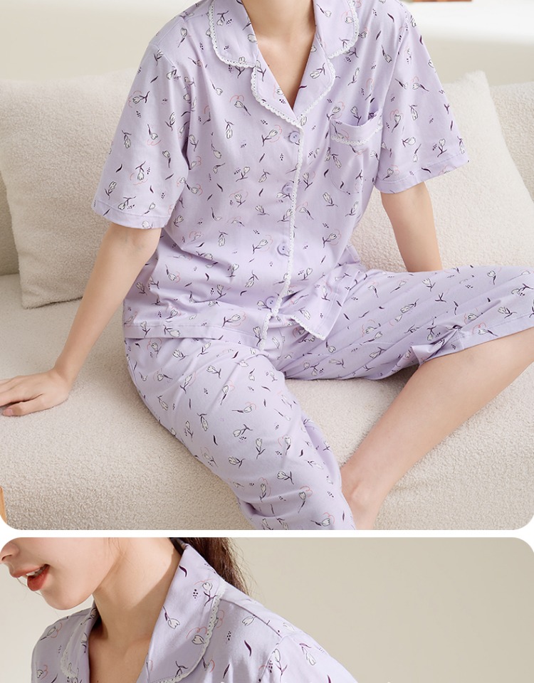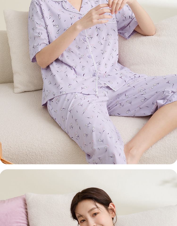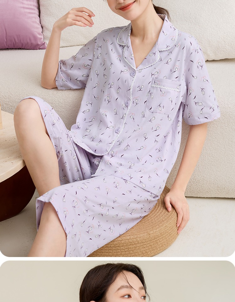 康妮雅女式短袖中裤开襟套装