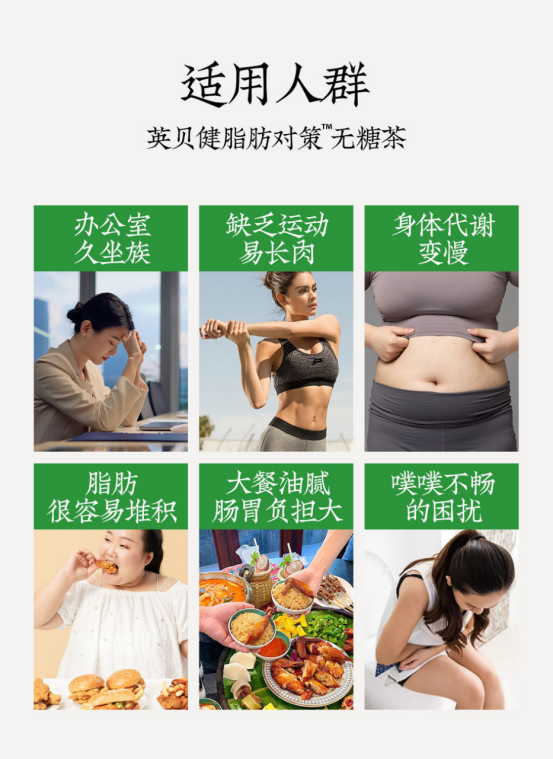 英贝健脂肪对策生茶‼适合什么人群喝⁉ 🥡外卖党:汉堡奶茶高脂高热量 🥘火锅控:重油重辣重盐麻辣狂欢 🤦久坐族:办公室“椅子焊死”型 熬夜党:第二天早晨脸变发面馒头 🍩宵夜党:炸鸡甜品烧烤螺蛳粉续命 精致girl:想喝出马甲线素颜更好看