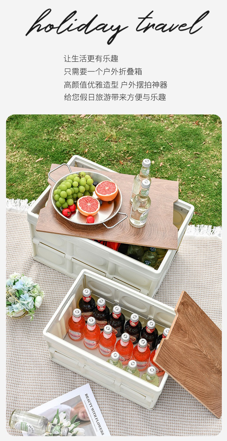 洛克兰户外折叠收纳箱 木盖款CRZDX401 白色 30L